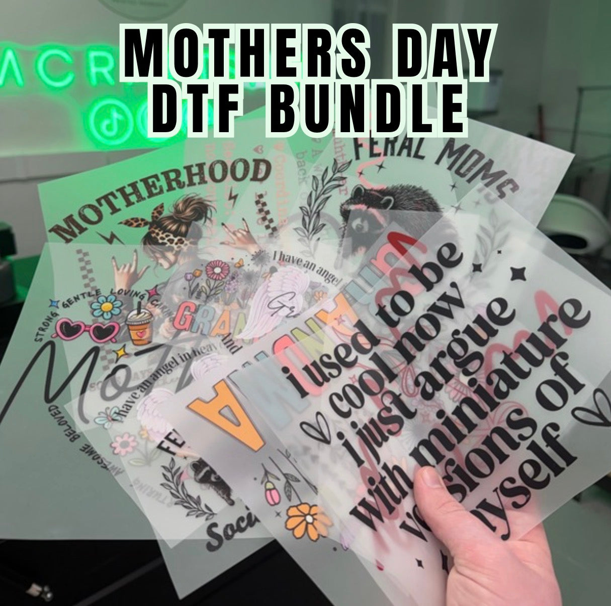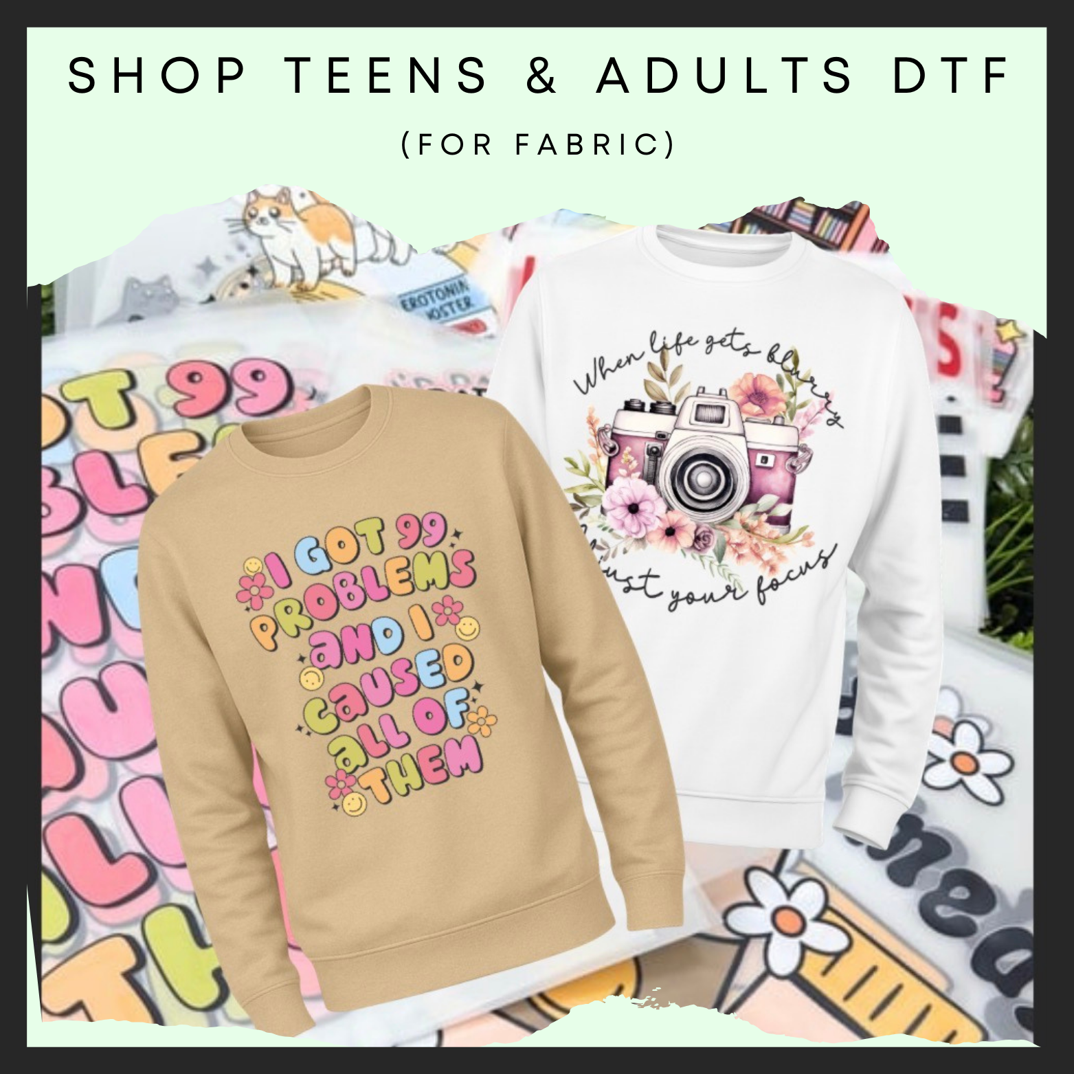 VIBRANT, LONG LASTING AND PERFECT TO PRESS ONTO FABRIC, PAPER OR EVEN CARDBOARD BOXES. OUR DTF PRINTS ARE TRULY VERSATILE.