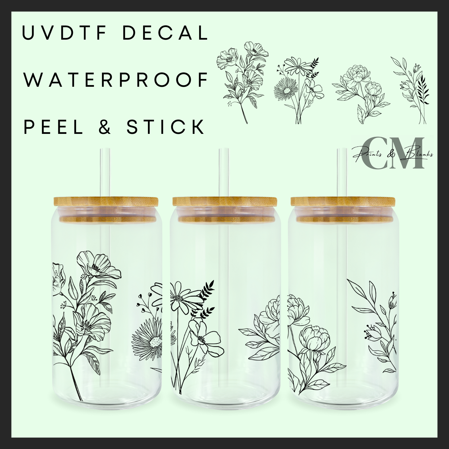 White flowers 16oz uvdtf wrap
