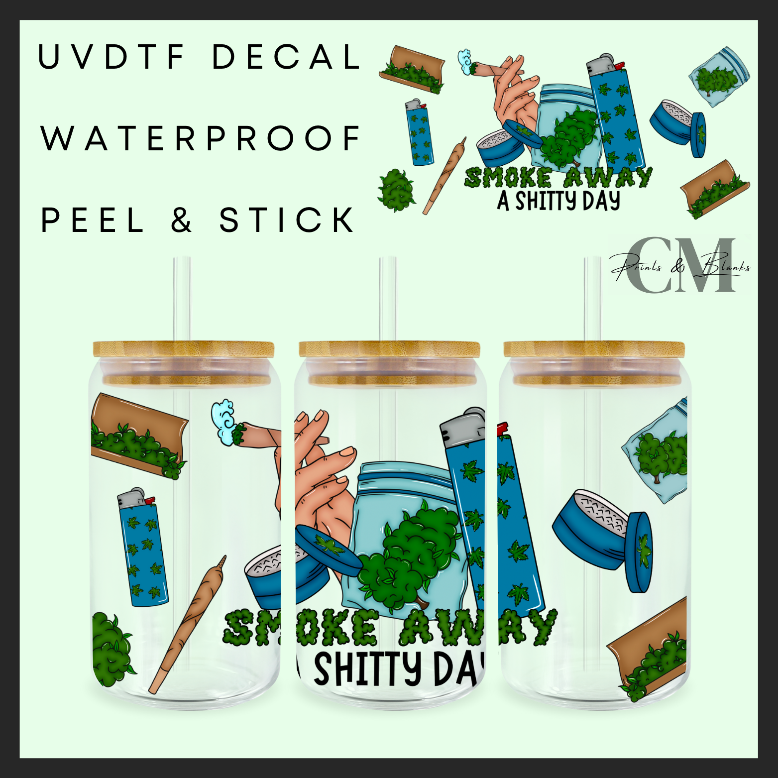 Smoke away a shitty day 16oz uvdtf wrap