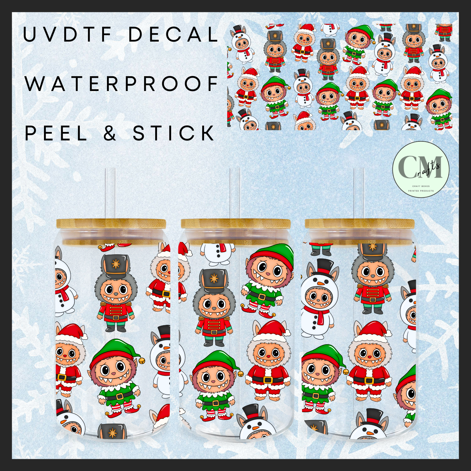 Repeated Christmas monsters 16oz Uvdtf wrap