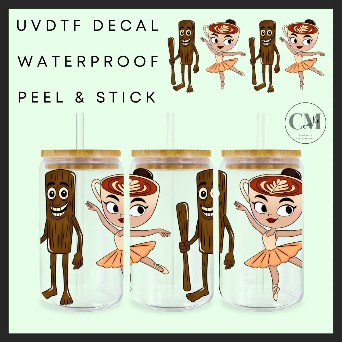 Brain rot monsters tree & cup 16oz Uvdtf wrap