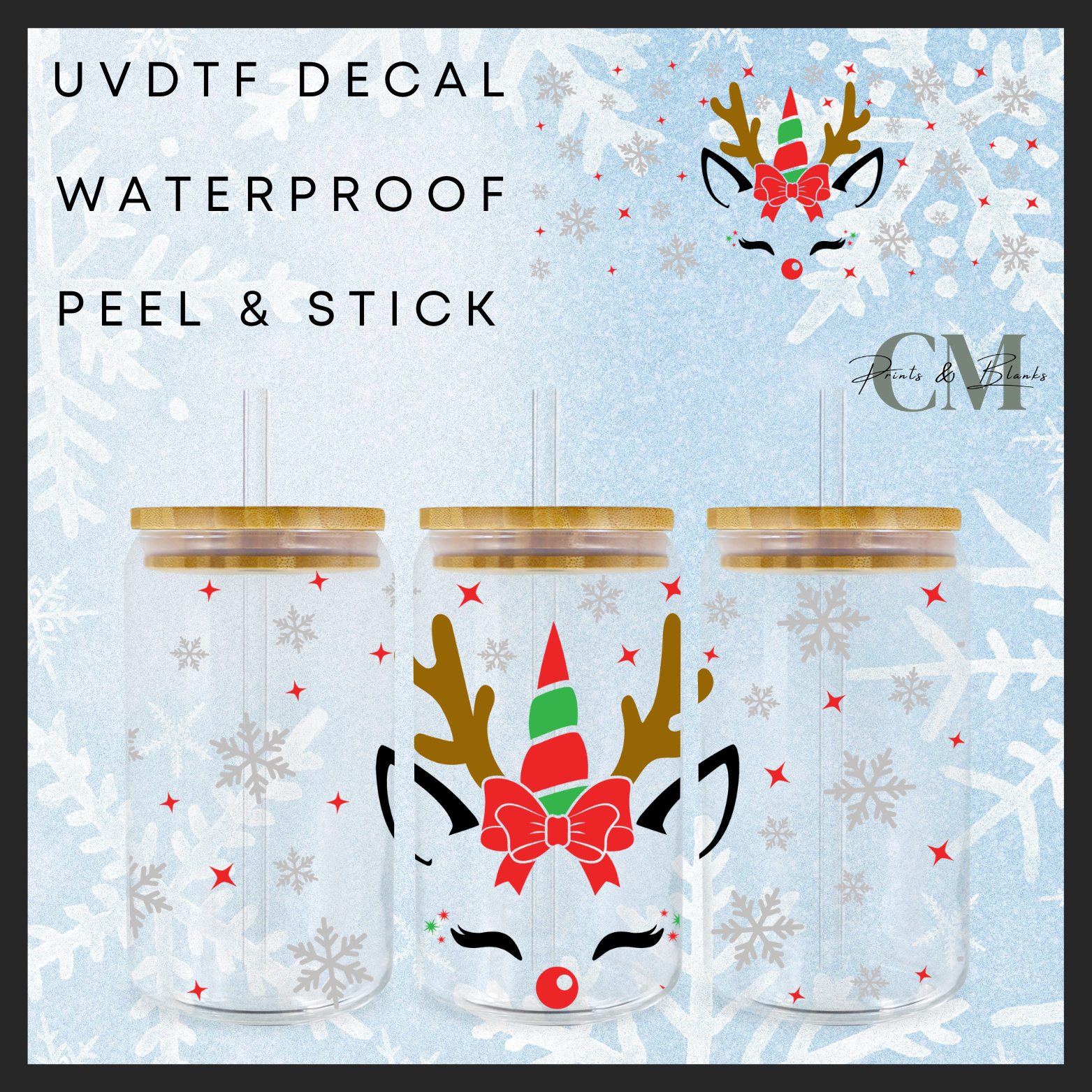 Christmas reindeer 16oz Uvdtf wrap