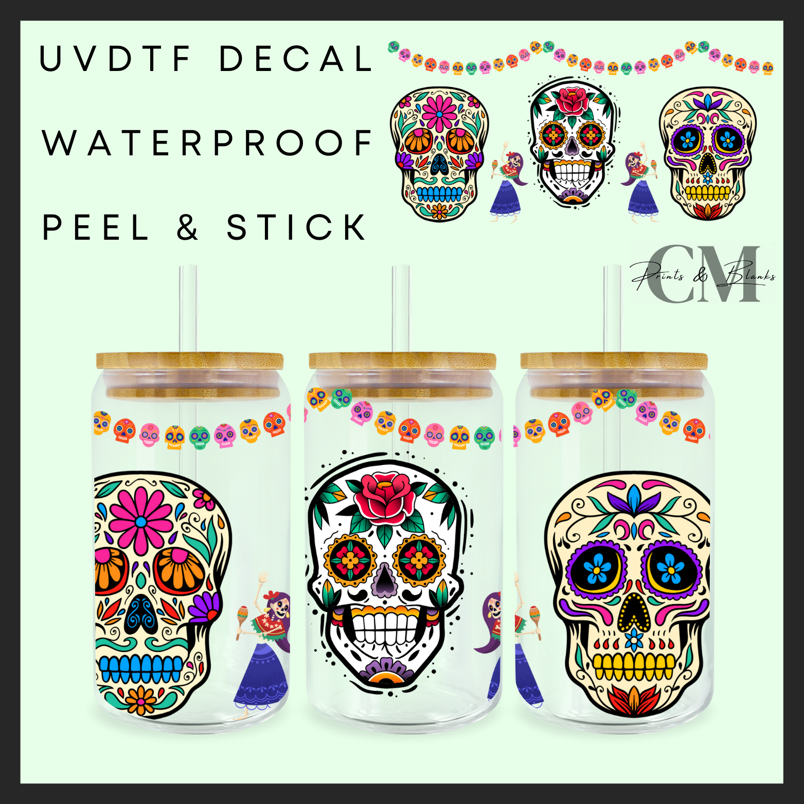 Sugar skulls 16oz Uvdtf wrap