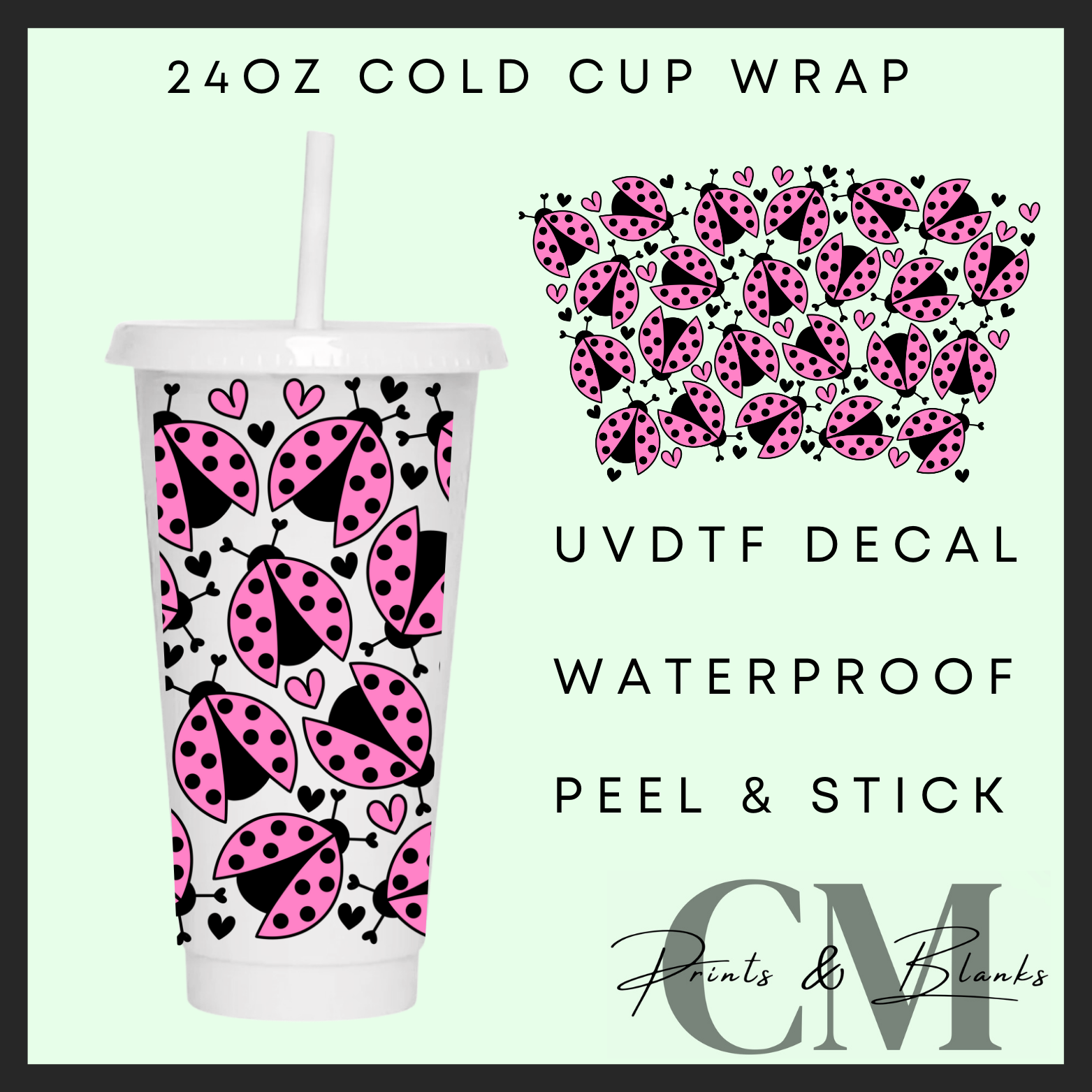 Pink lady bugs 24oz Uvdtf wrap