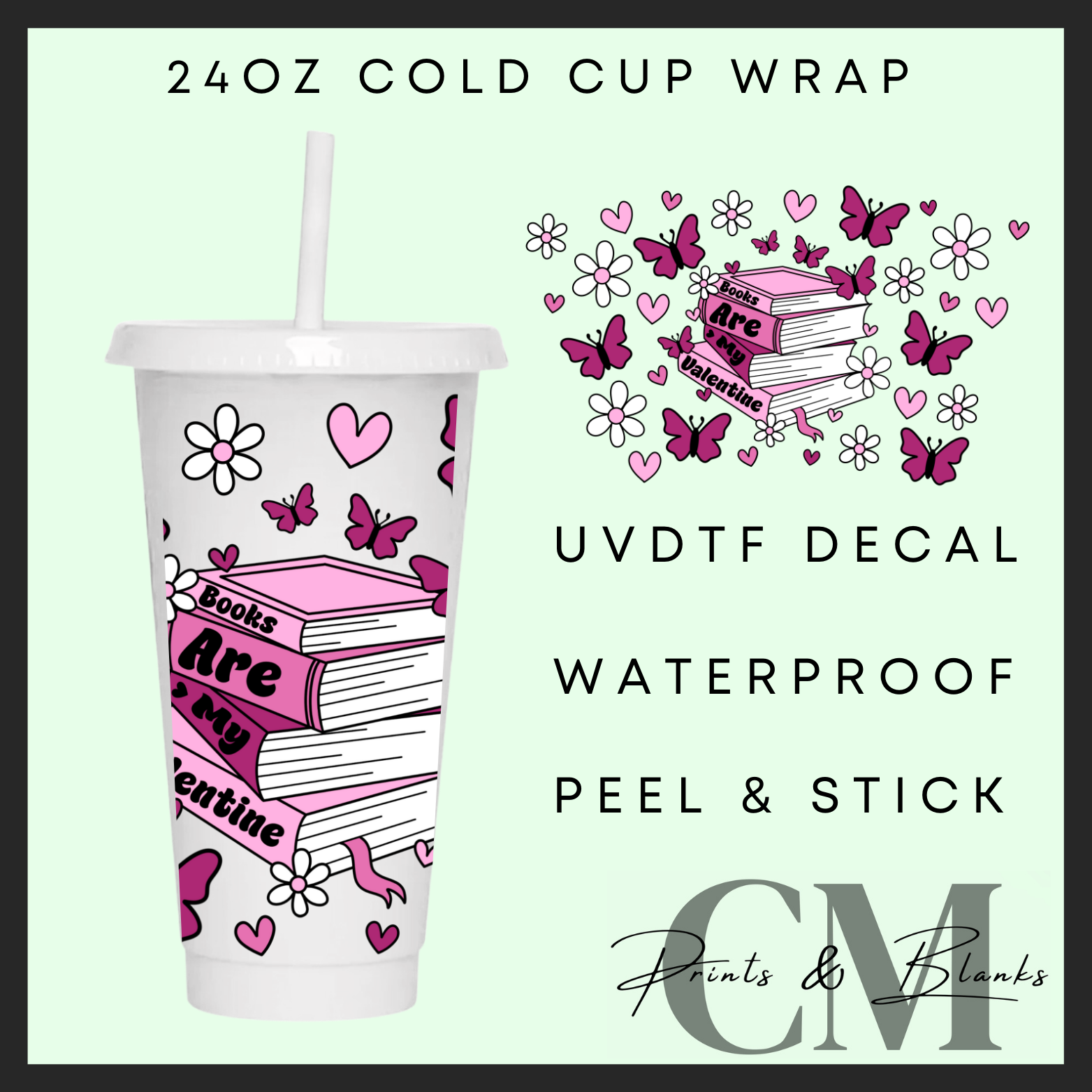 Books are my valentine 24oz Uvdtf wrap