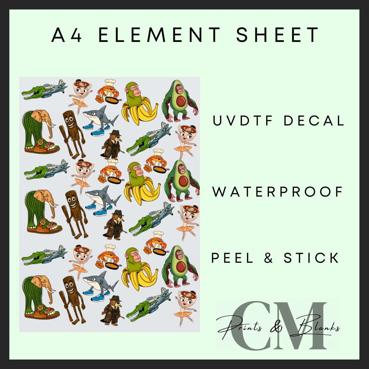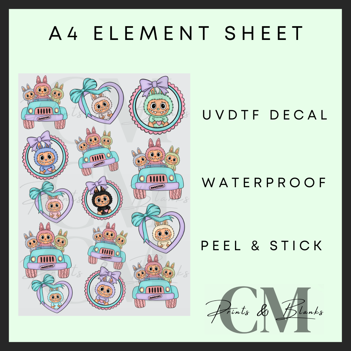Sitting pretty cars monsters A4 uvdtf element sheet
