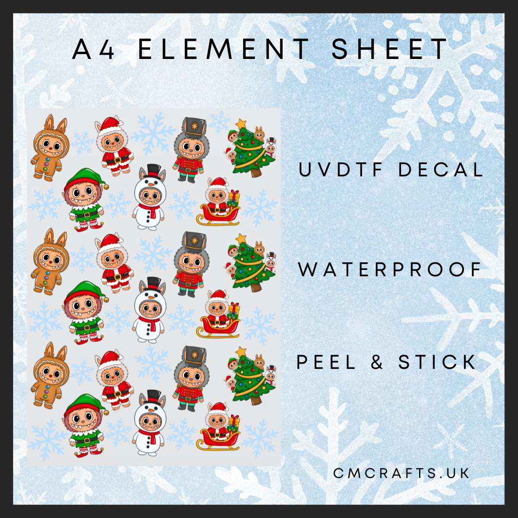 Repeated Christmas monsters Uvdtf A4 element sheet