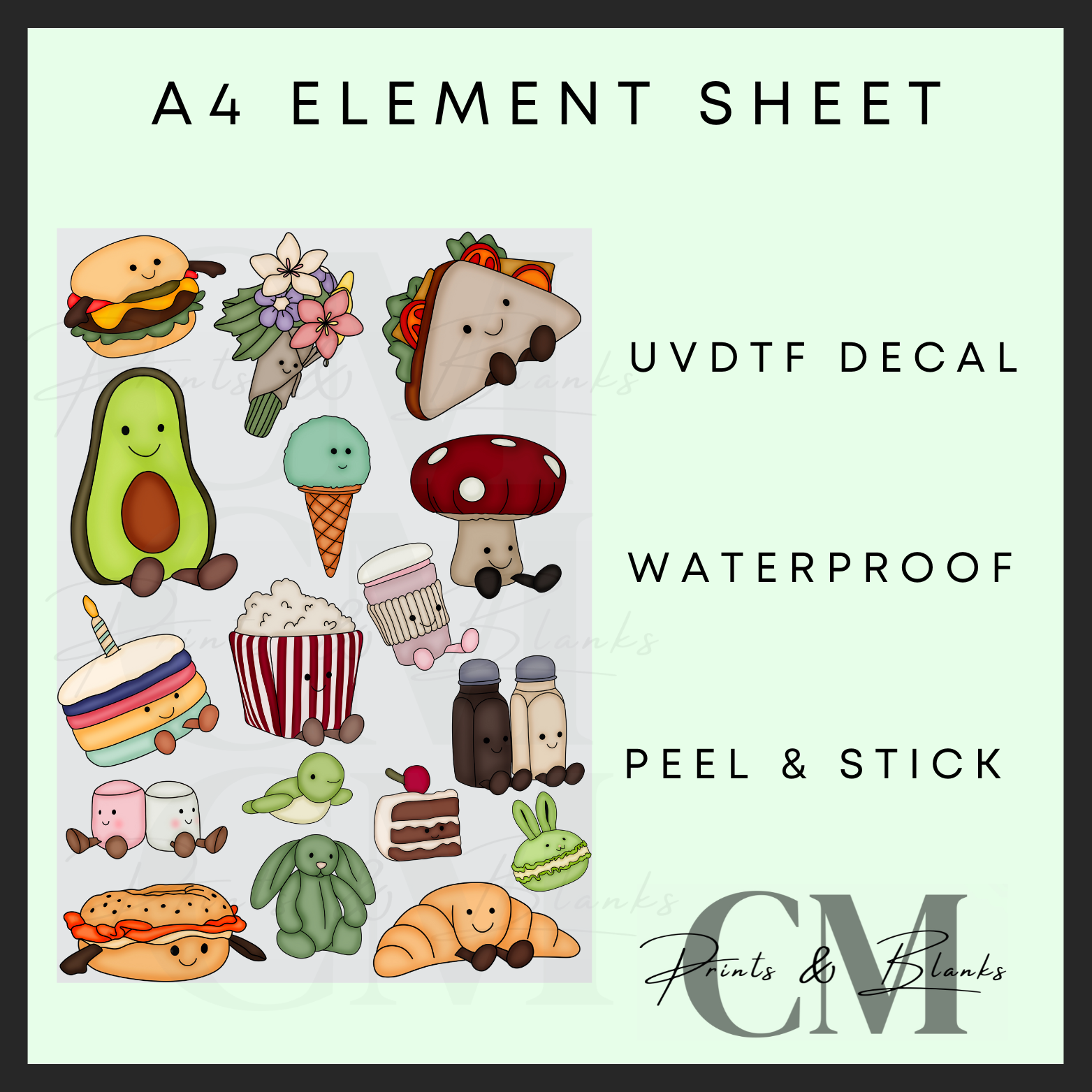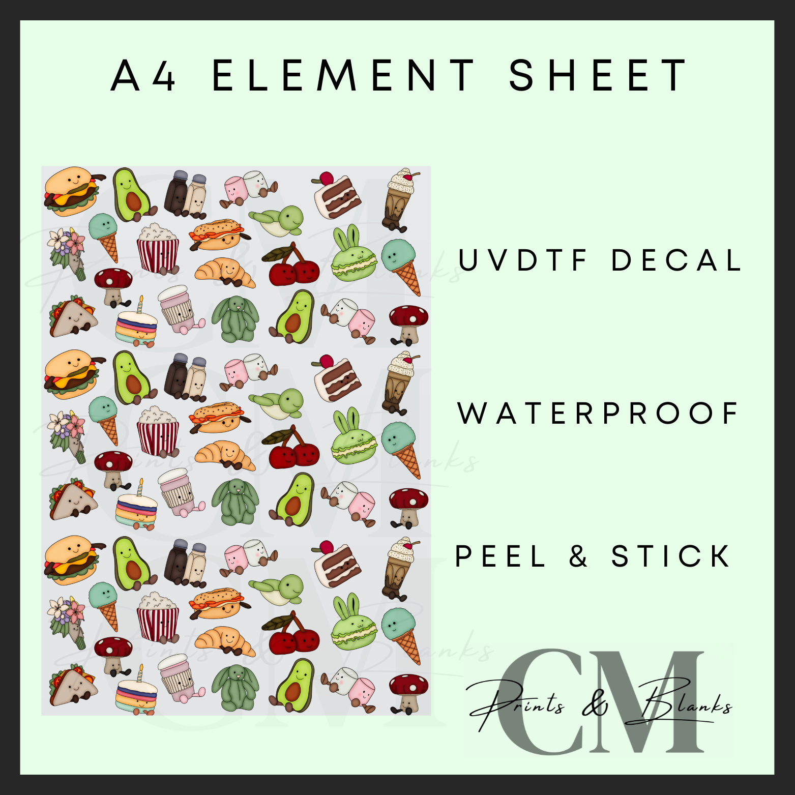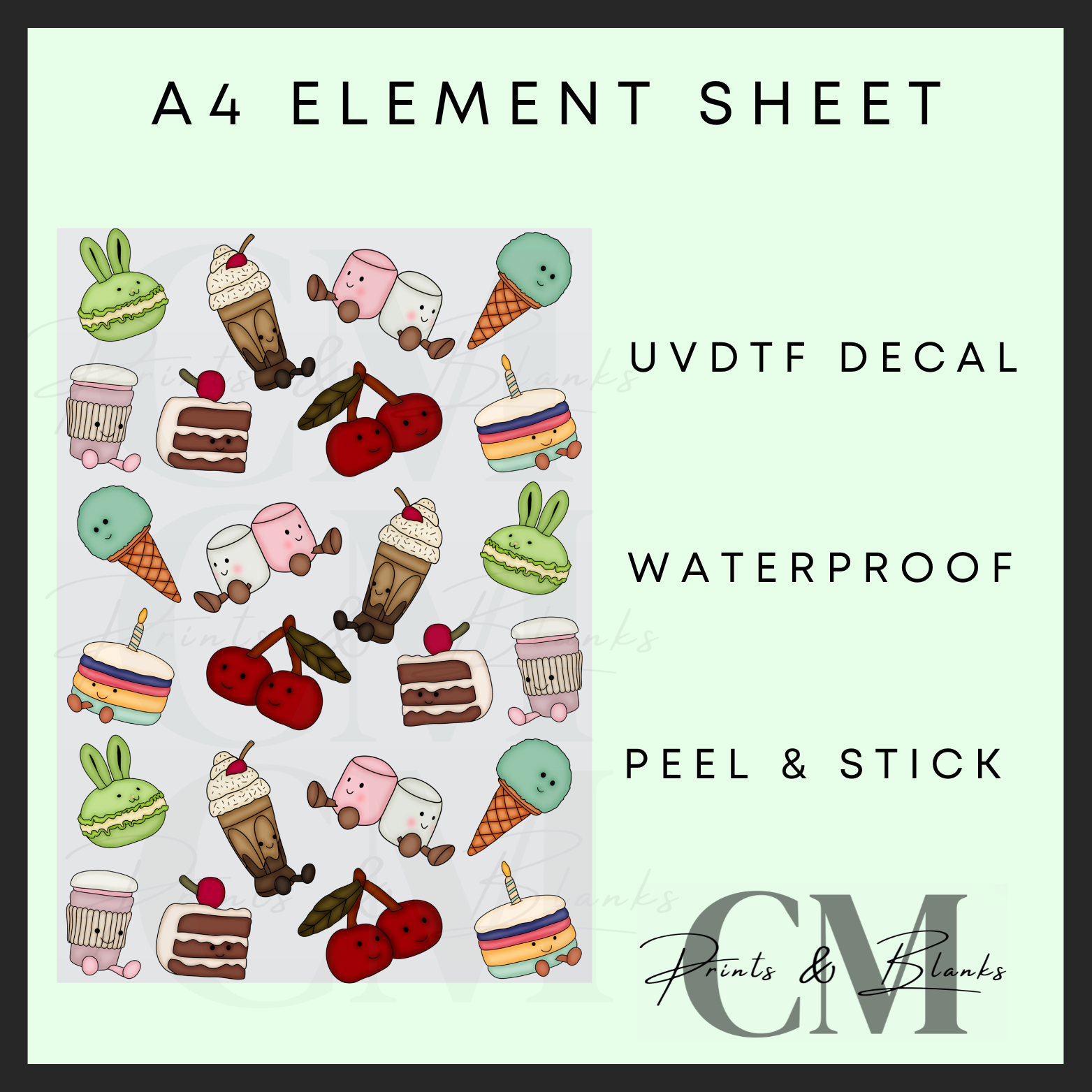 Uvdtf A4 Cup care decal element sheet (20x decals)