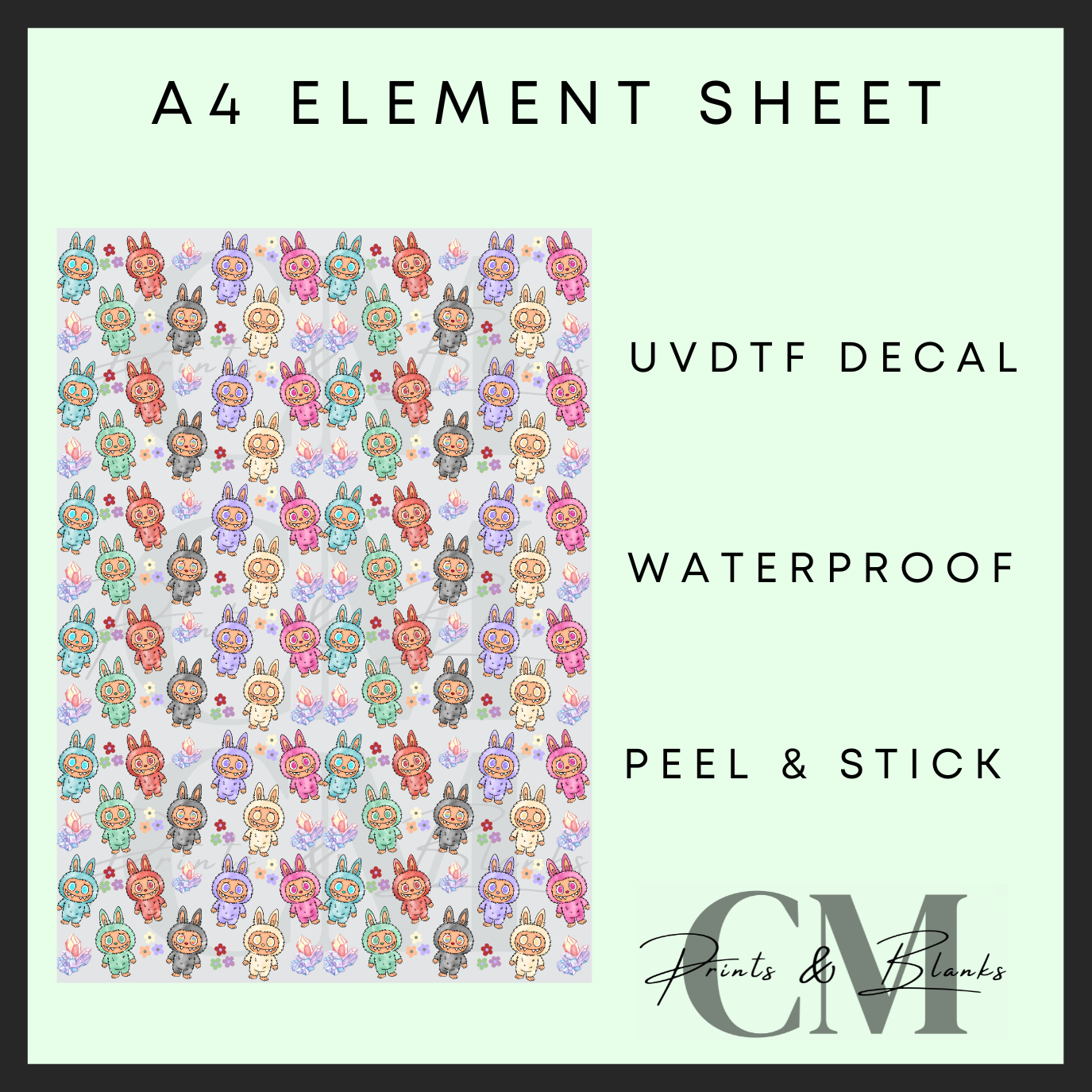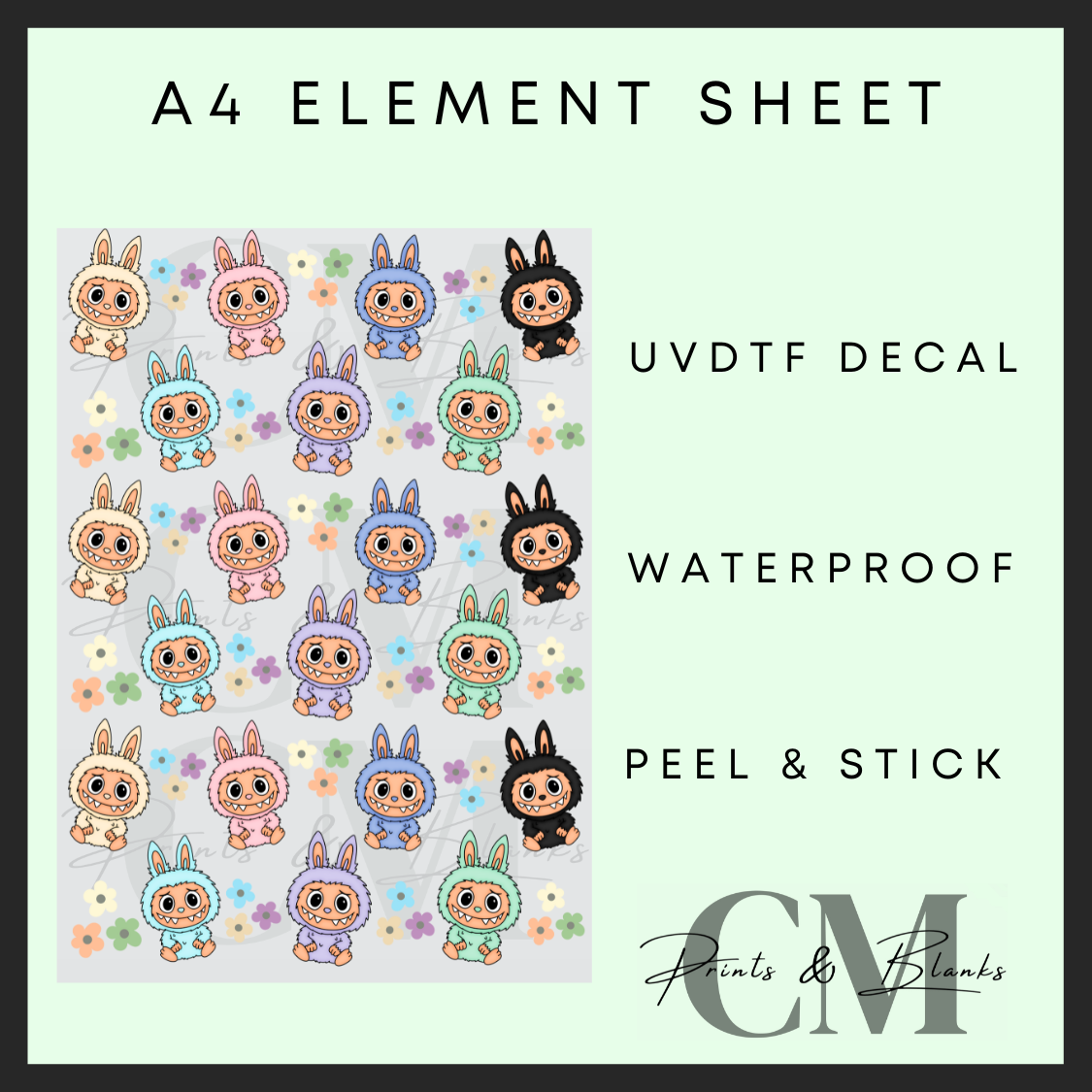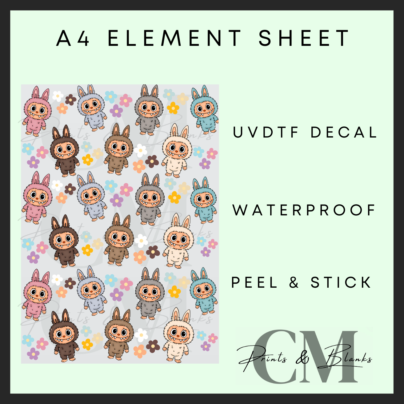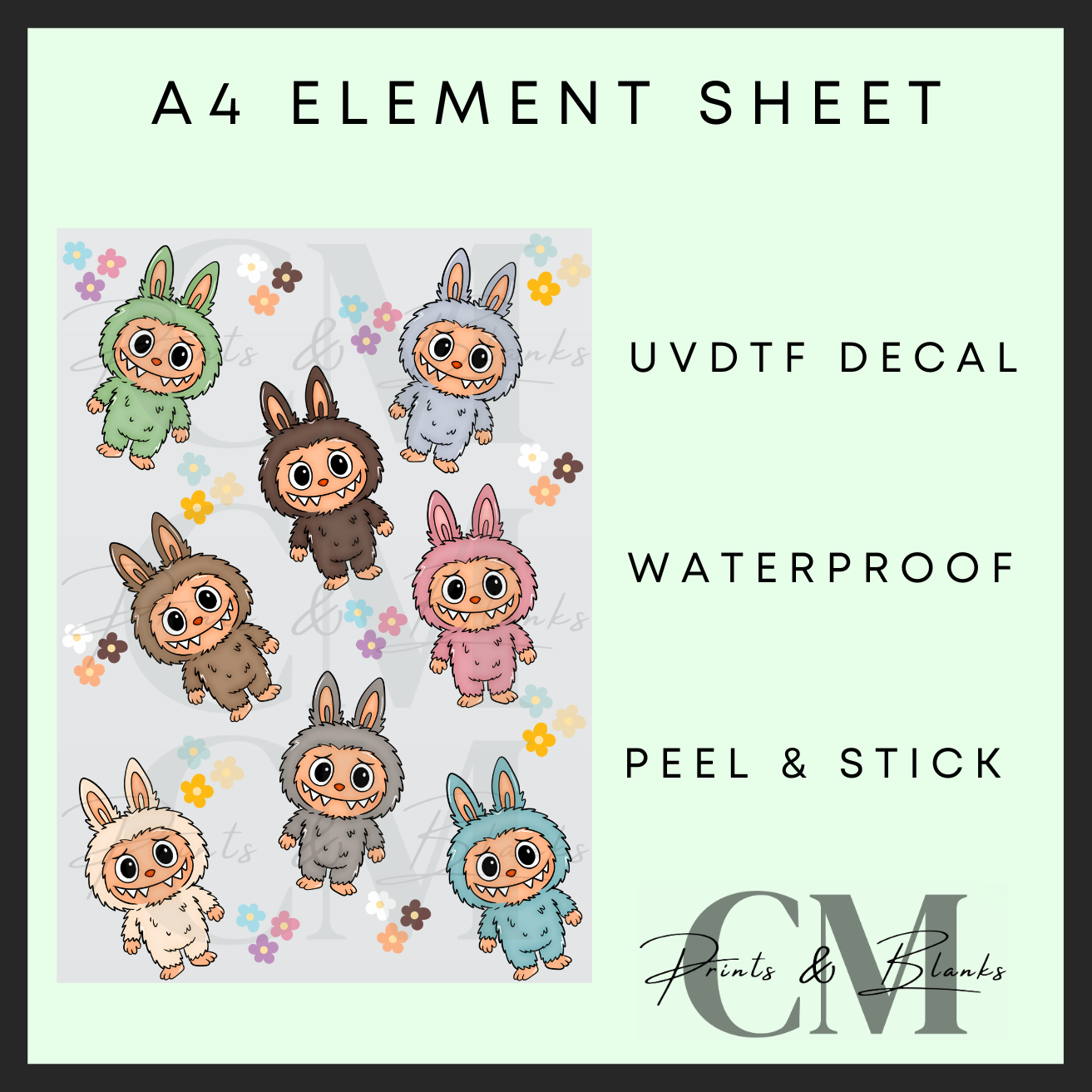 Sitting pretty flowers monsters A4 uvdtf element sheet