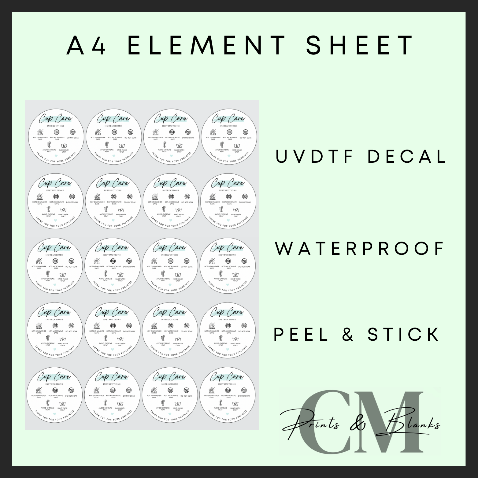 Uvdtf A4 Cup care decal element sheet (20x decals)