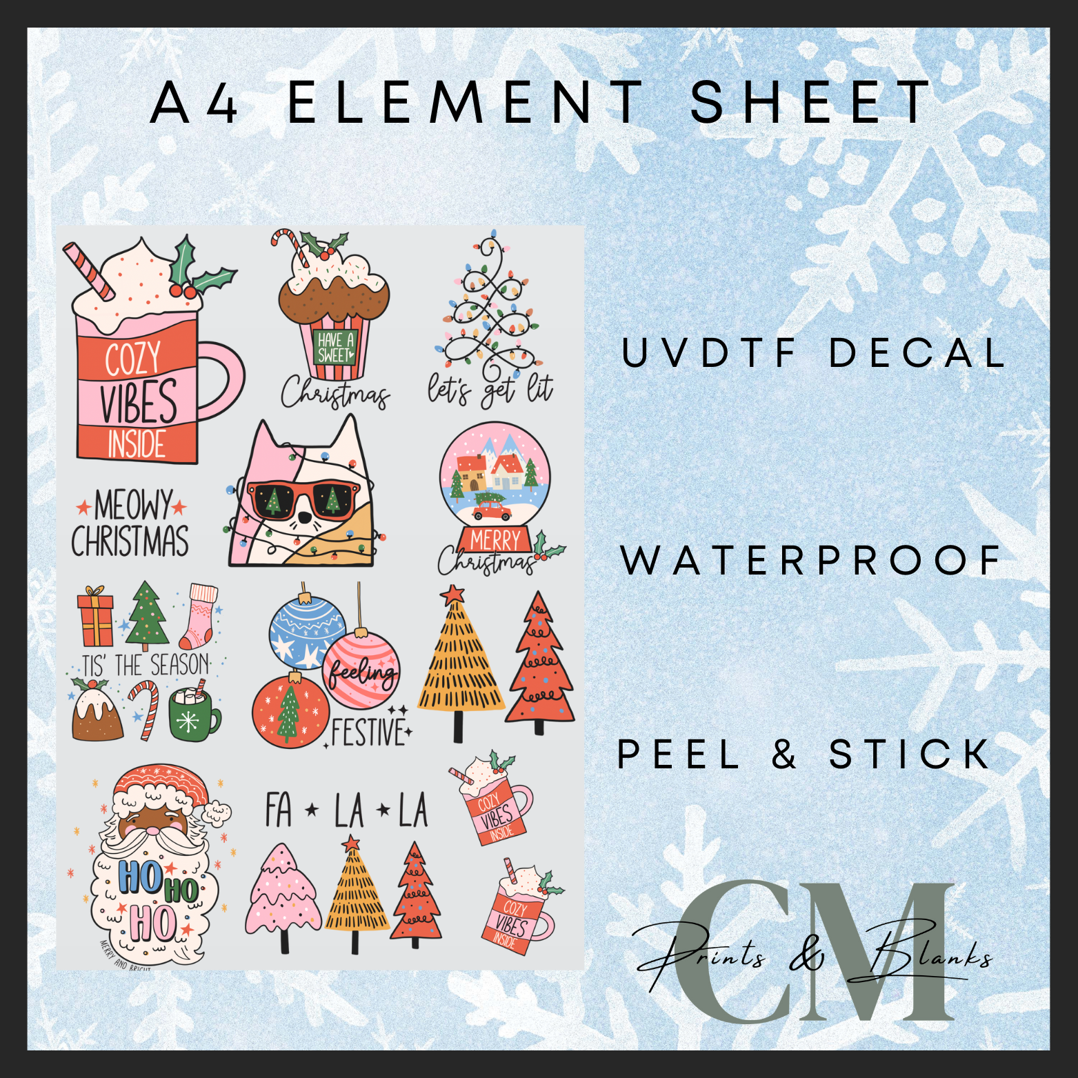 Small Repeated Christmas monsters Uvdtf A4 element sheet
