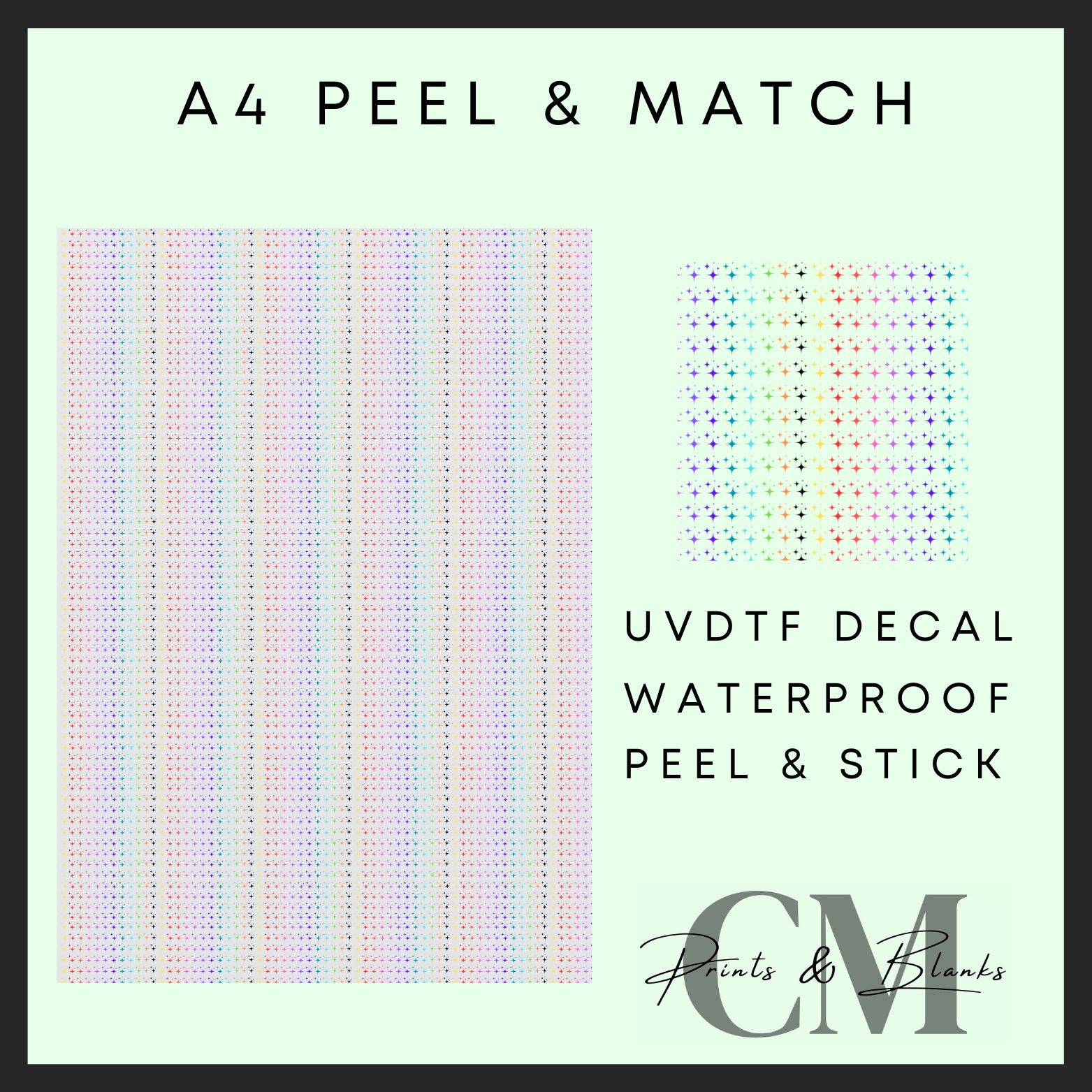 Rainbow stars A4 Peel & Match Uvdtf sheet