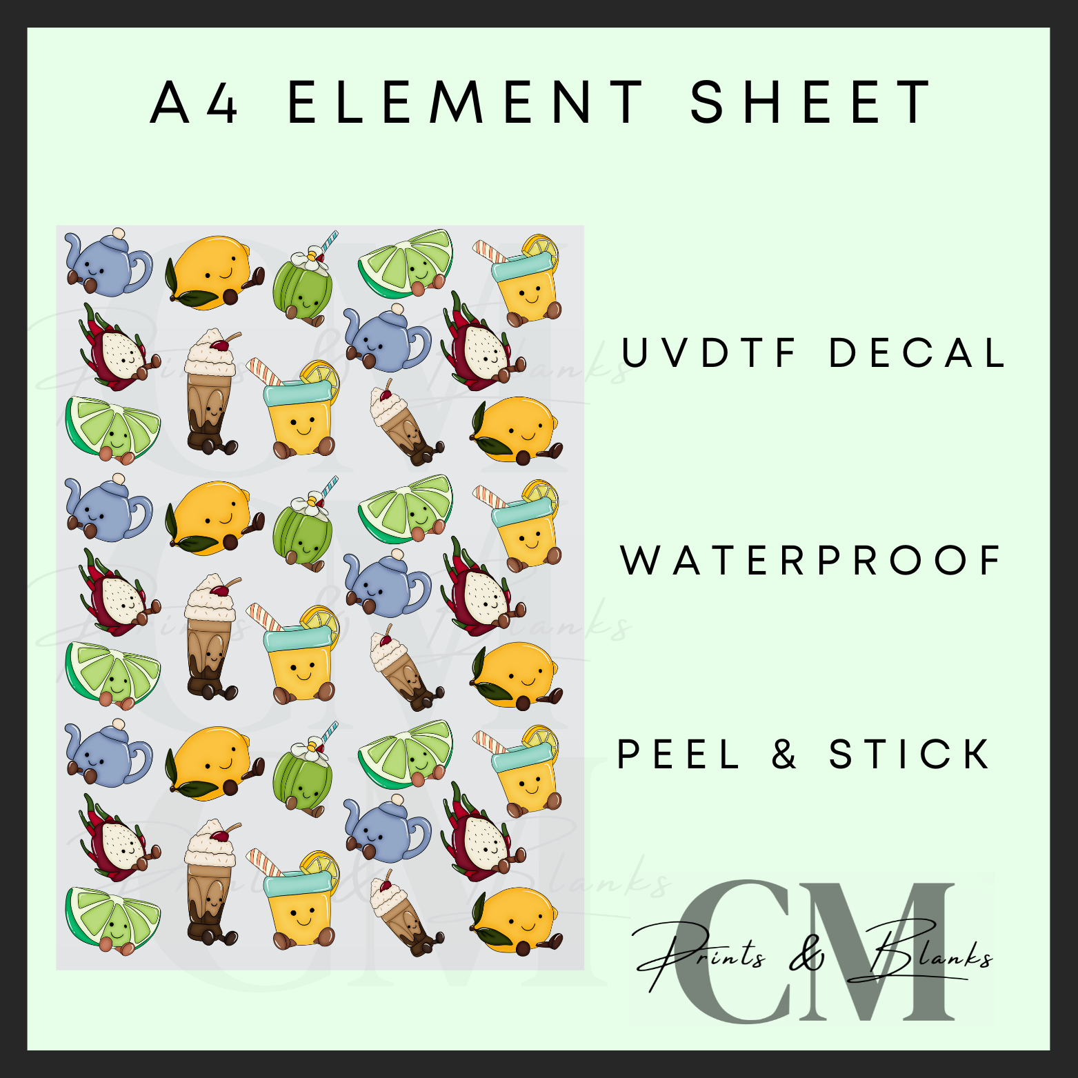 Summer drinks jelly Teddy A4 uvdtf element sheet