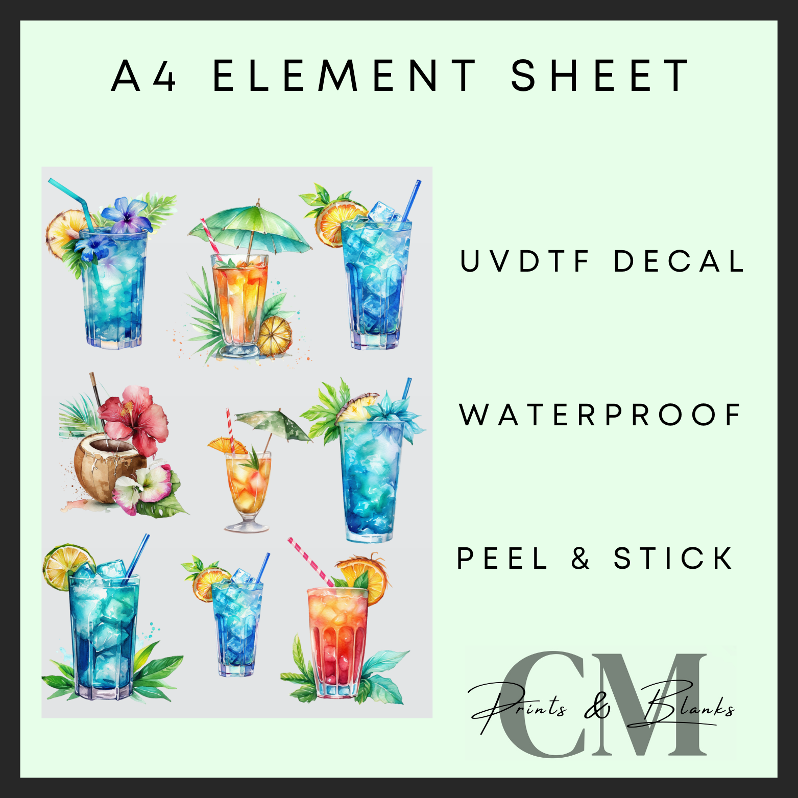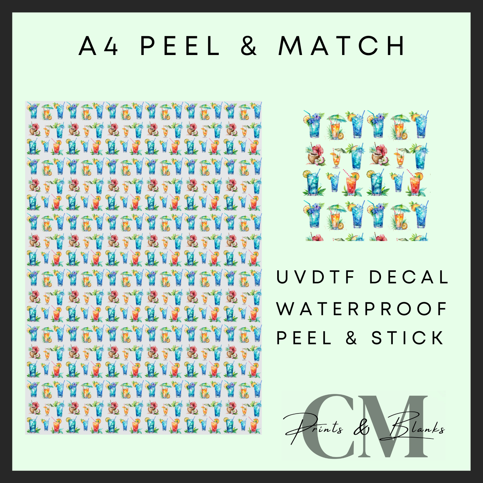 Summer drinks A4 Peel & Match Uvdtf sheet