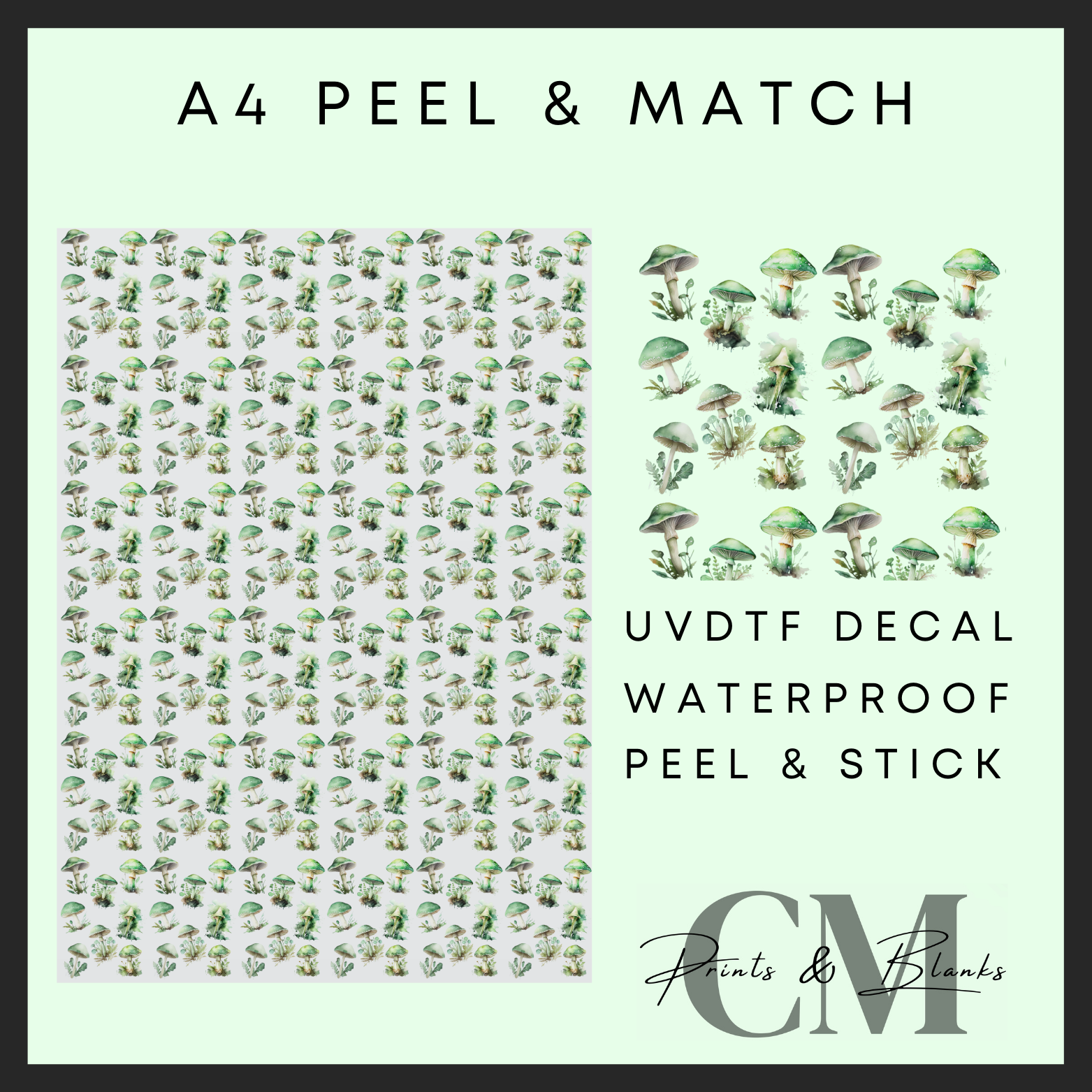 Green mushrooms A4 Peel & Match Uvdtf sheet