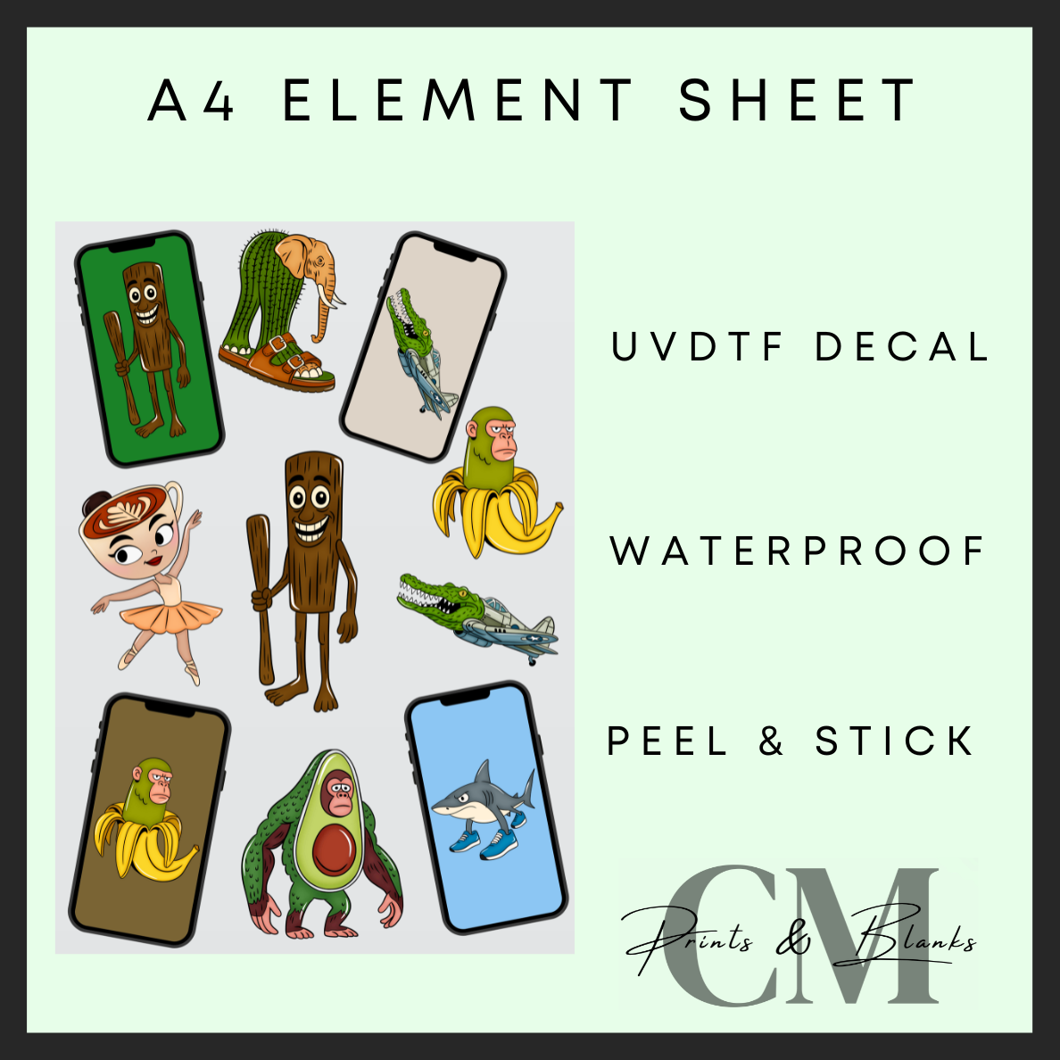 Brain rot monsters on phones Uvdtf A4 element sheet