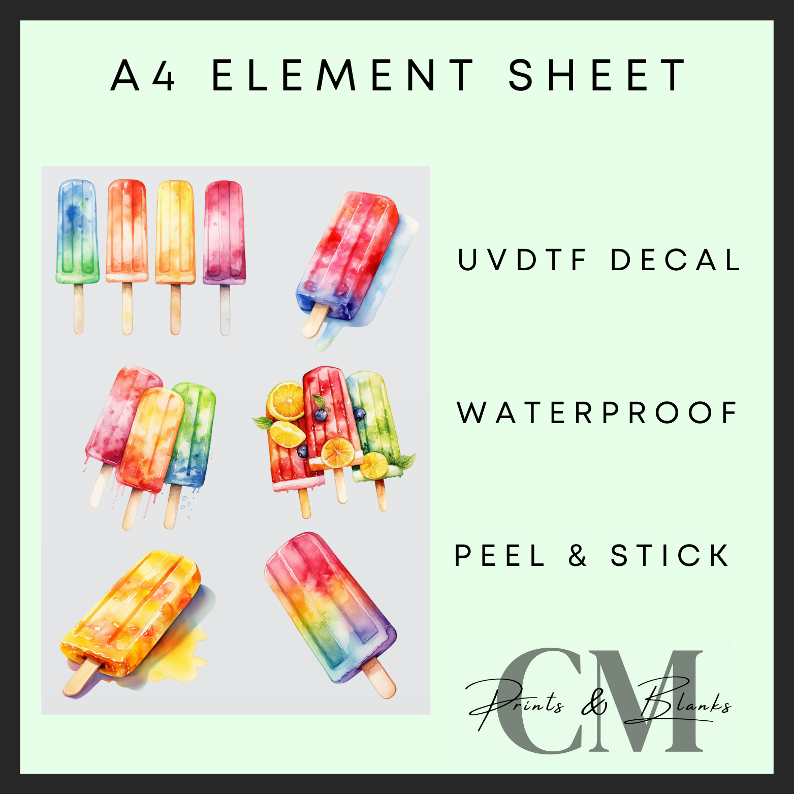 Ice lolly A4 uvdtf element sheet