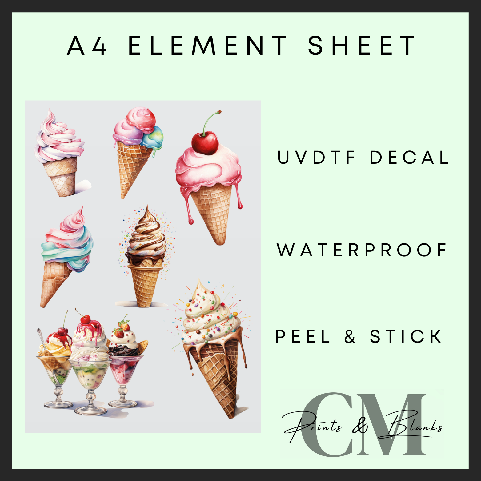 Ice cream A4 uvdtf element sheet