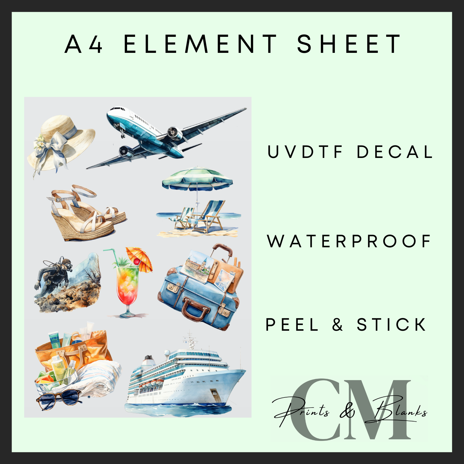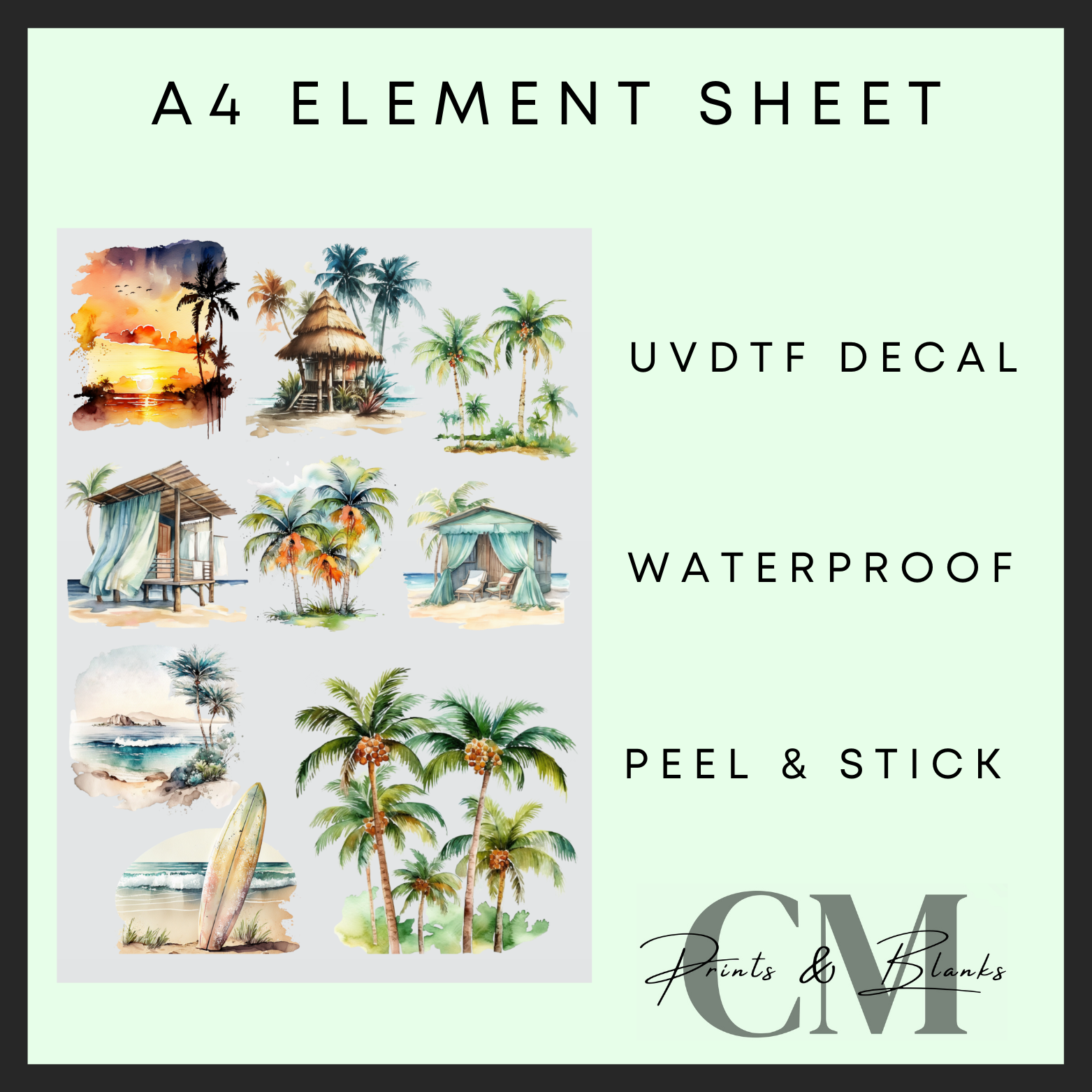 Paradise holiday A4 uvdtf element sheet