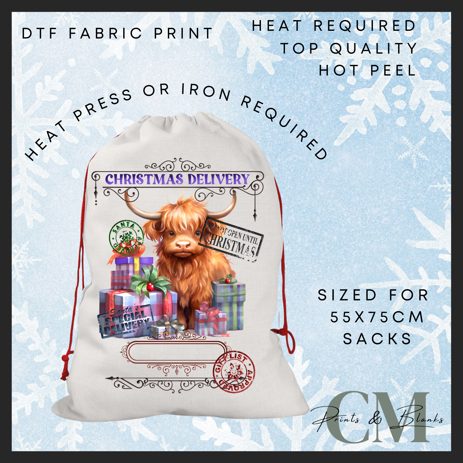 Christmas delivery highland cow DTF Santa sack transfer