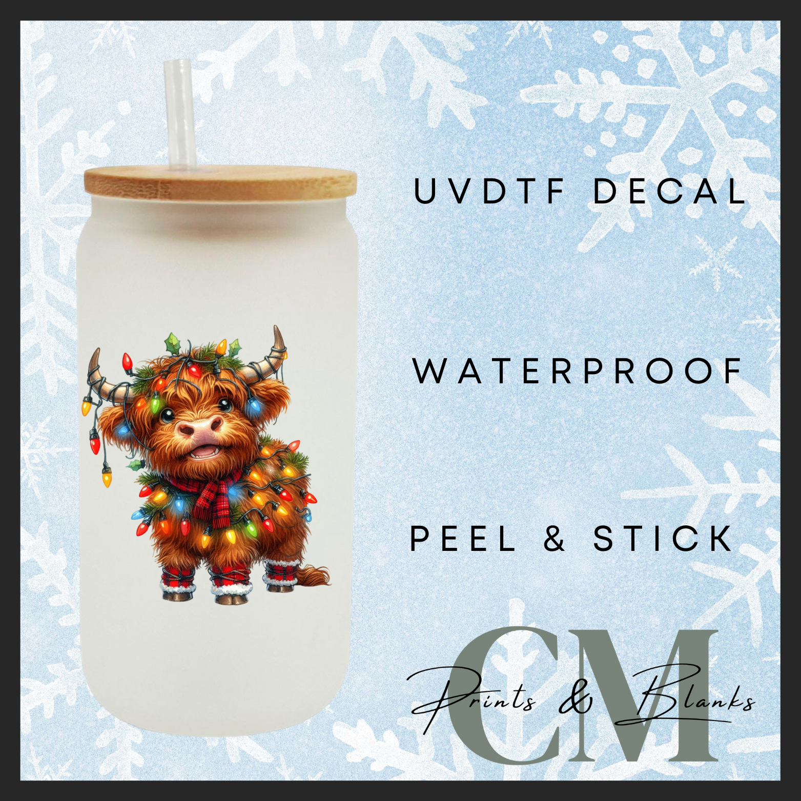 Christmas lights highland cows Uvdtf single transfers. (4” / 10cm)