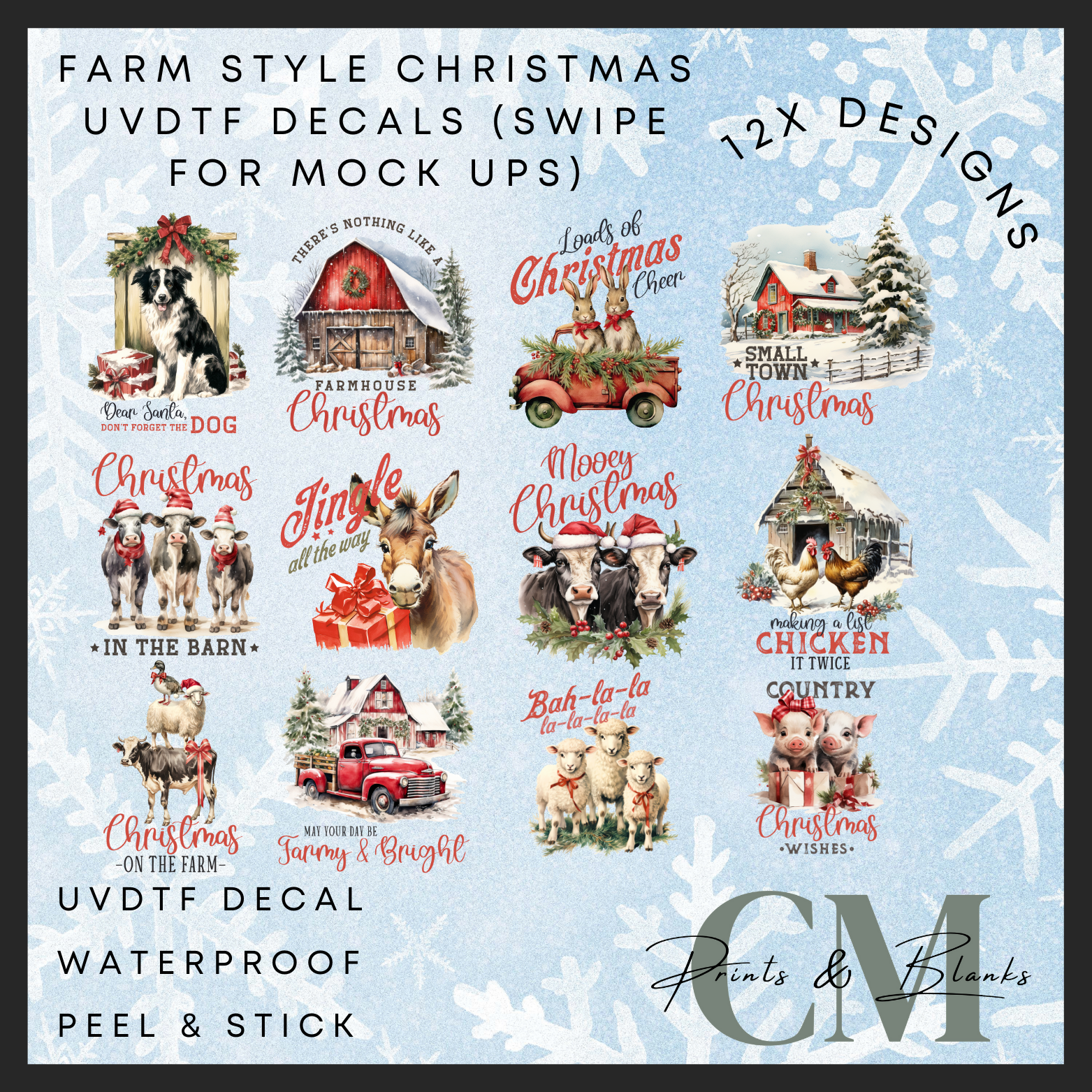 Farm style Christmas uvdtf single transfers (4” / 10cm)