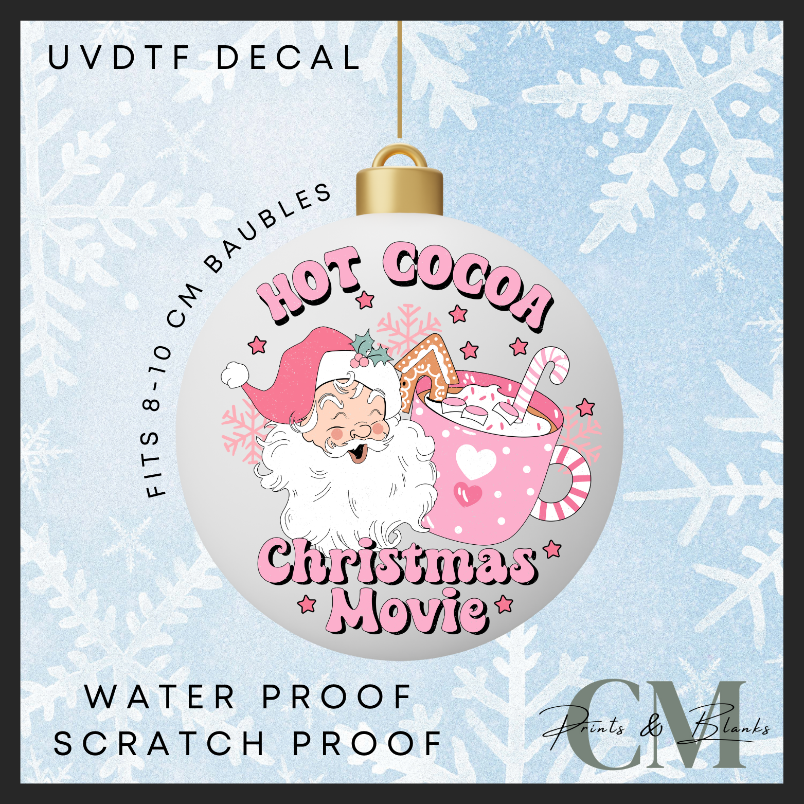 Hot cocoa Christmas movies 8-10cm bauble Uvdtf decal