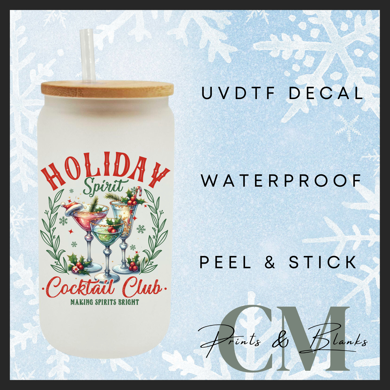 Holiday cocktail club single uvdtf decal (4” / 10cm)