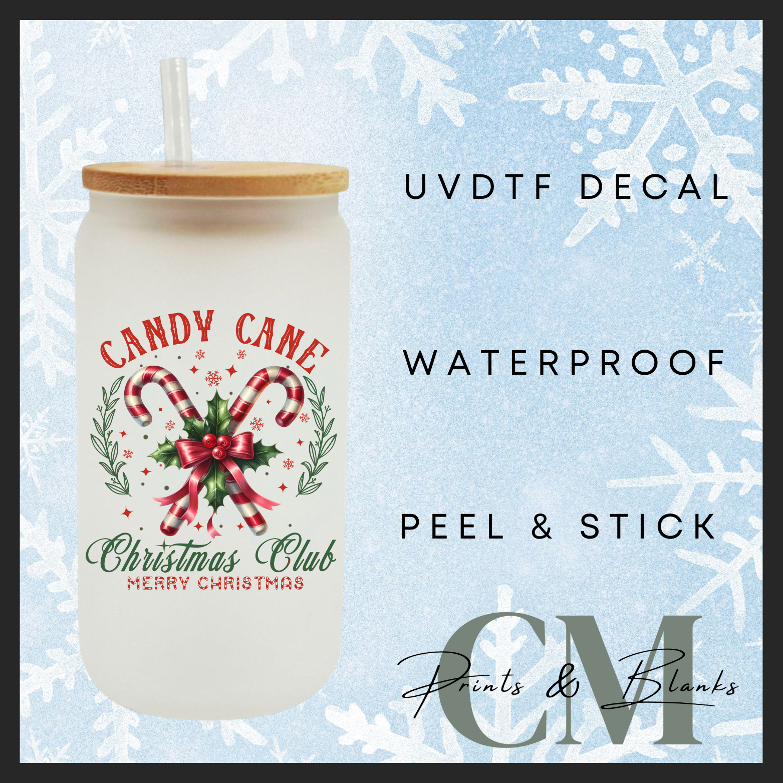 Candy cane Christmas club single uvdtf decal (4” / 10cm)