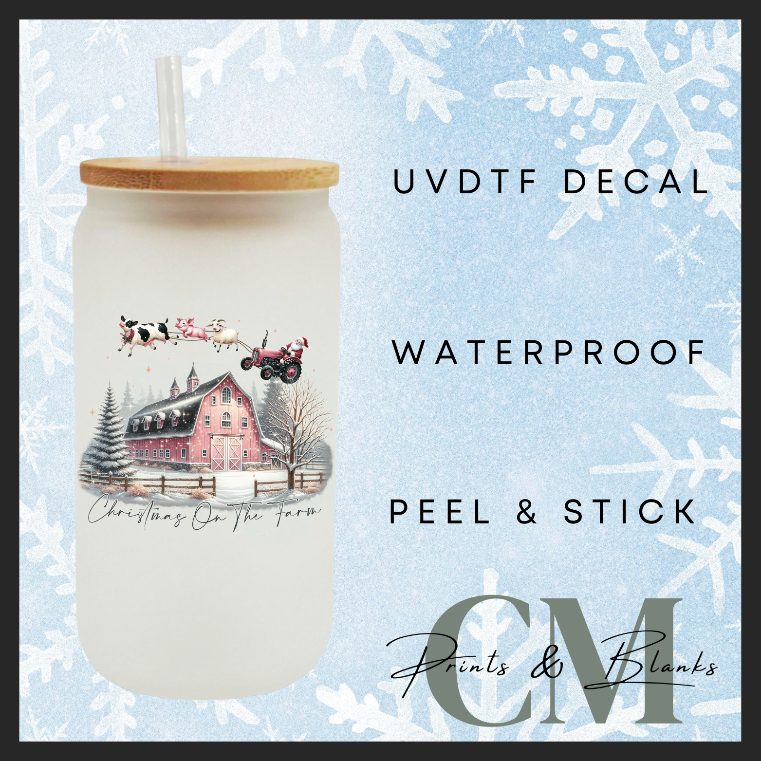 Pink Christmas on the farm uvdtf single decal (4”, 10cm)