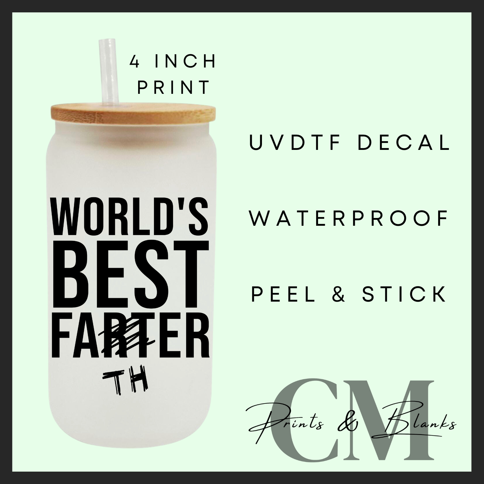 Worlds best farter Fathers Day Uvdtf single decal (4” / 10cm)