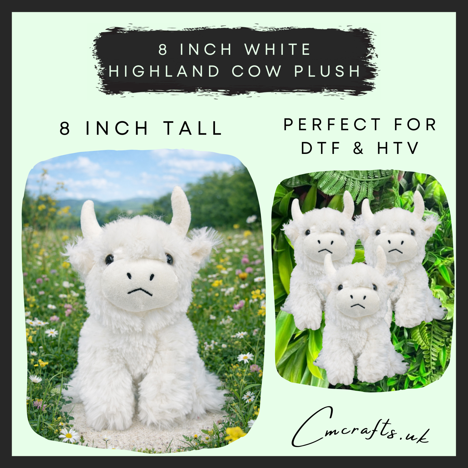 8” white highland cow plush plush