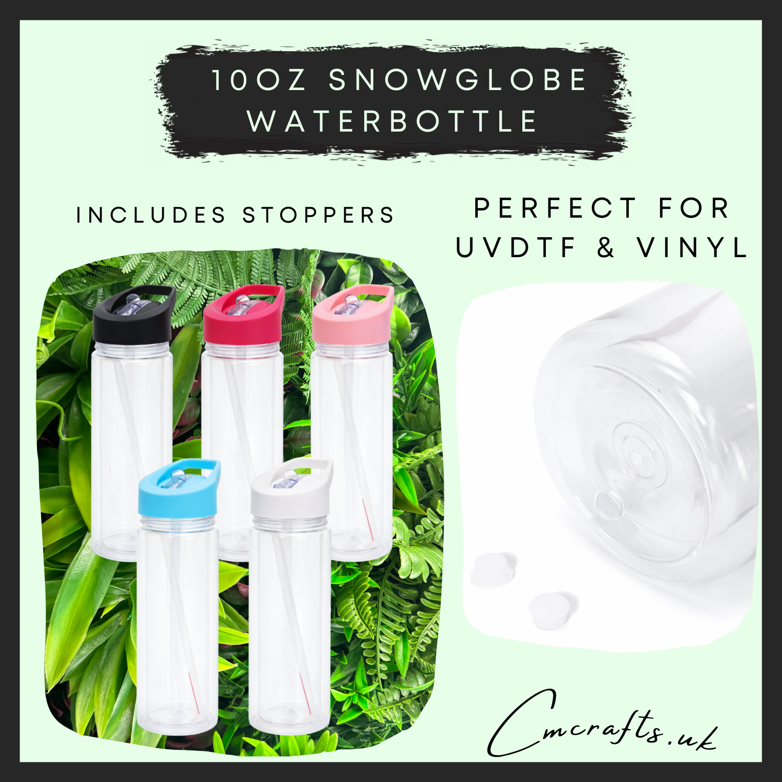10oz snow globe water bottles (stoppers included)