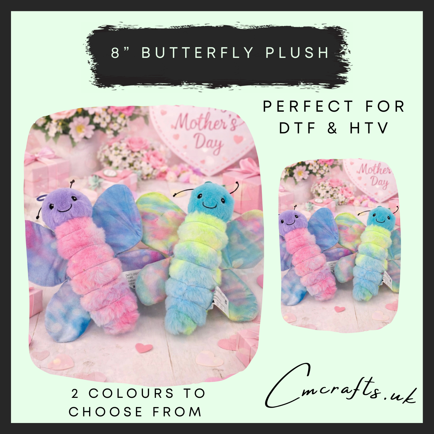 8” butterfly multi coloured plush
