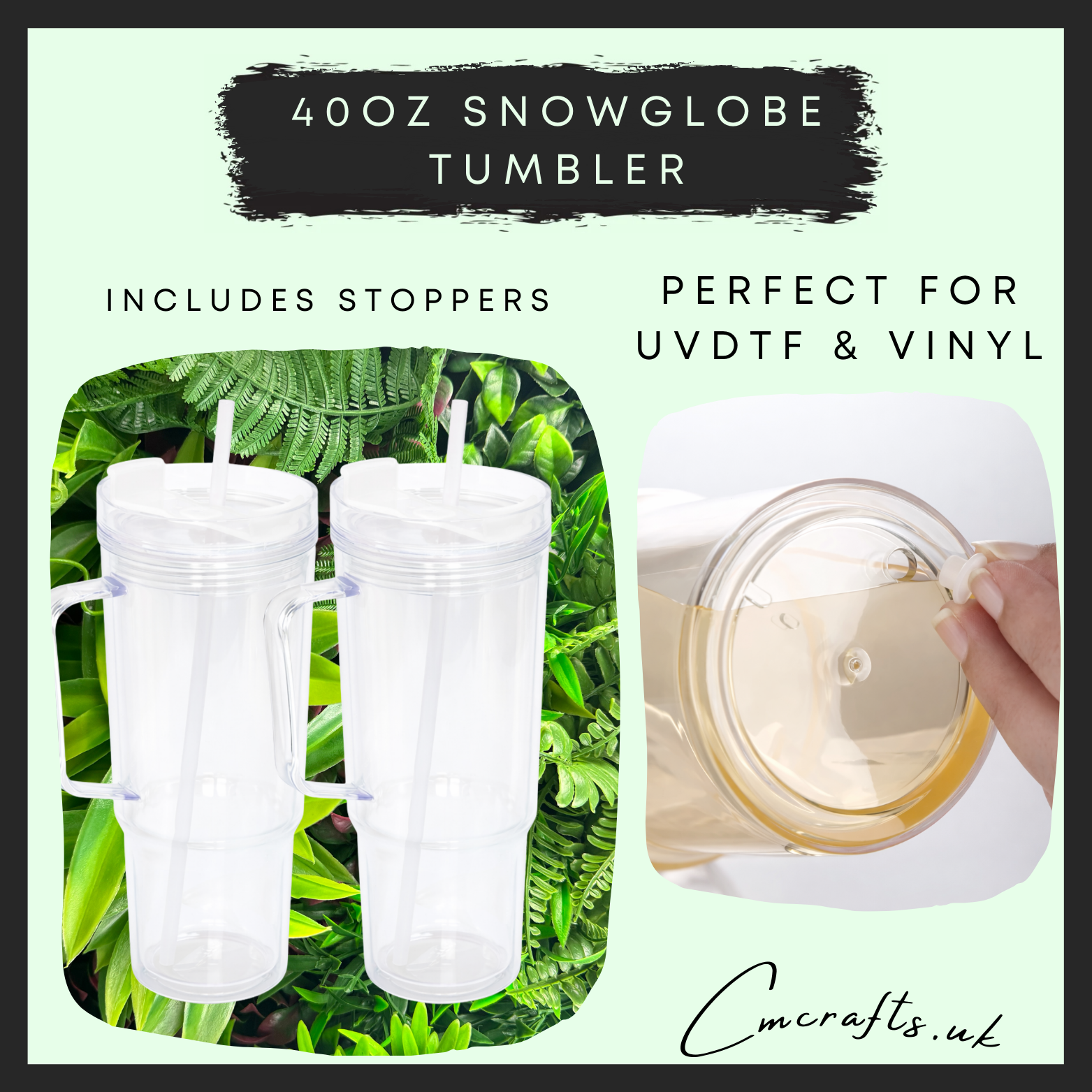 40oz plastic snow globe tumblers (includes stopper)