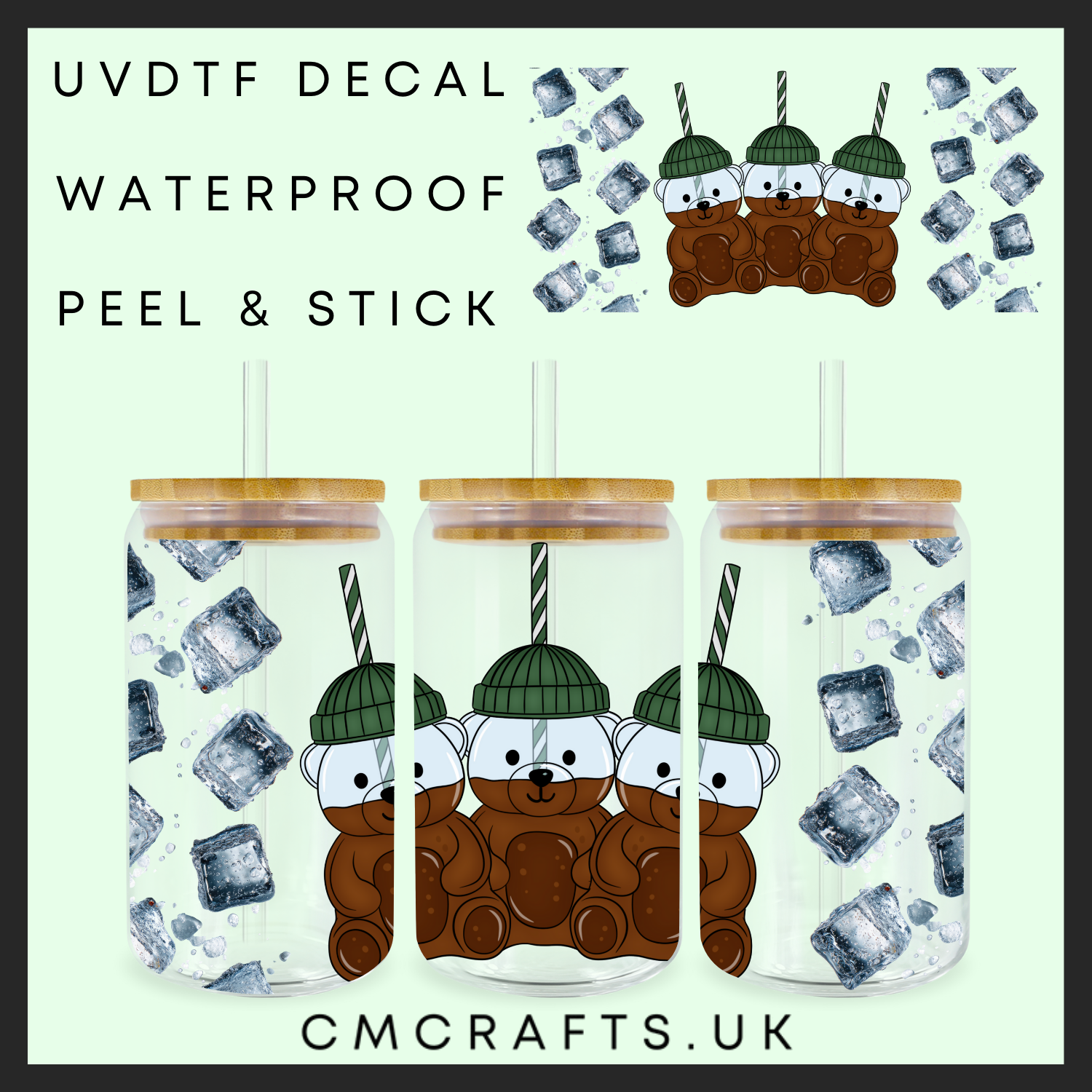 The bear collection 3 green 16oz uvdtf wrap