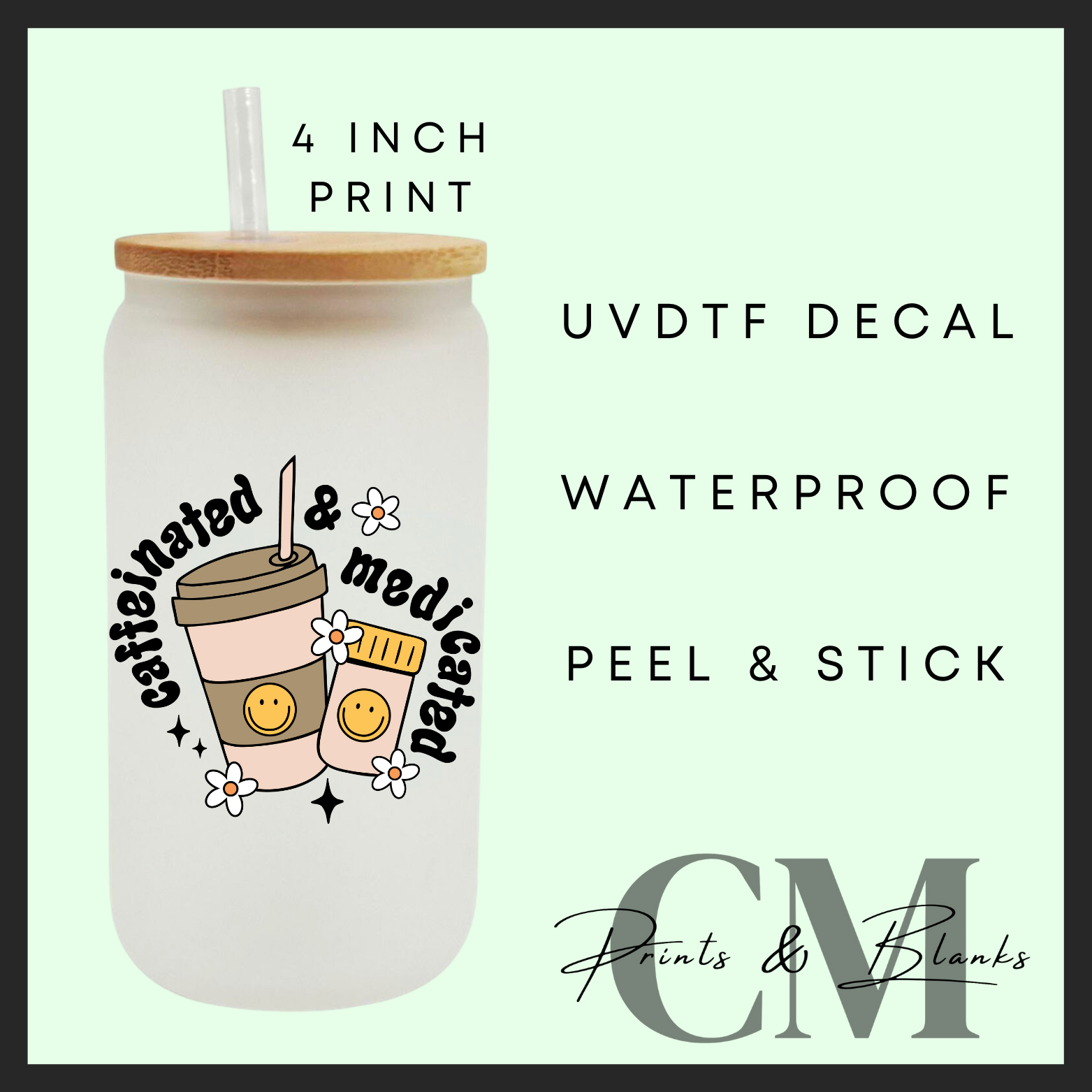 Caffeinated & medicated Uvdtf single decal (4” / 10cm)