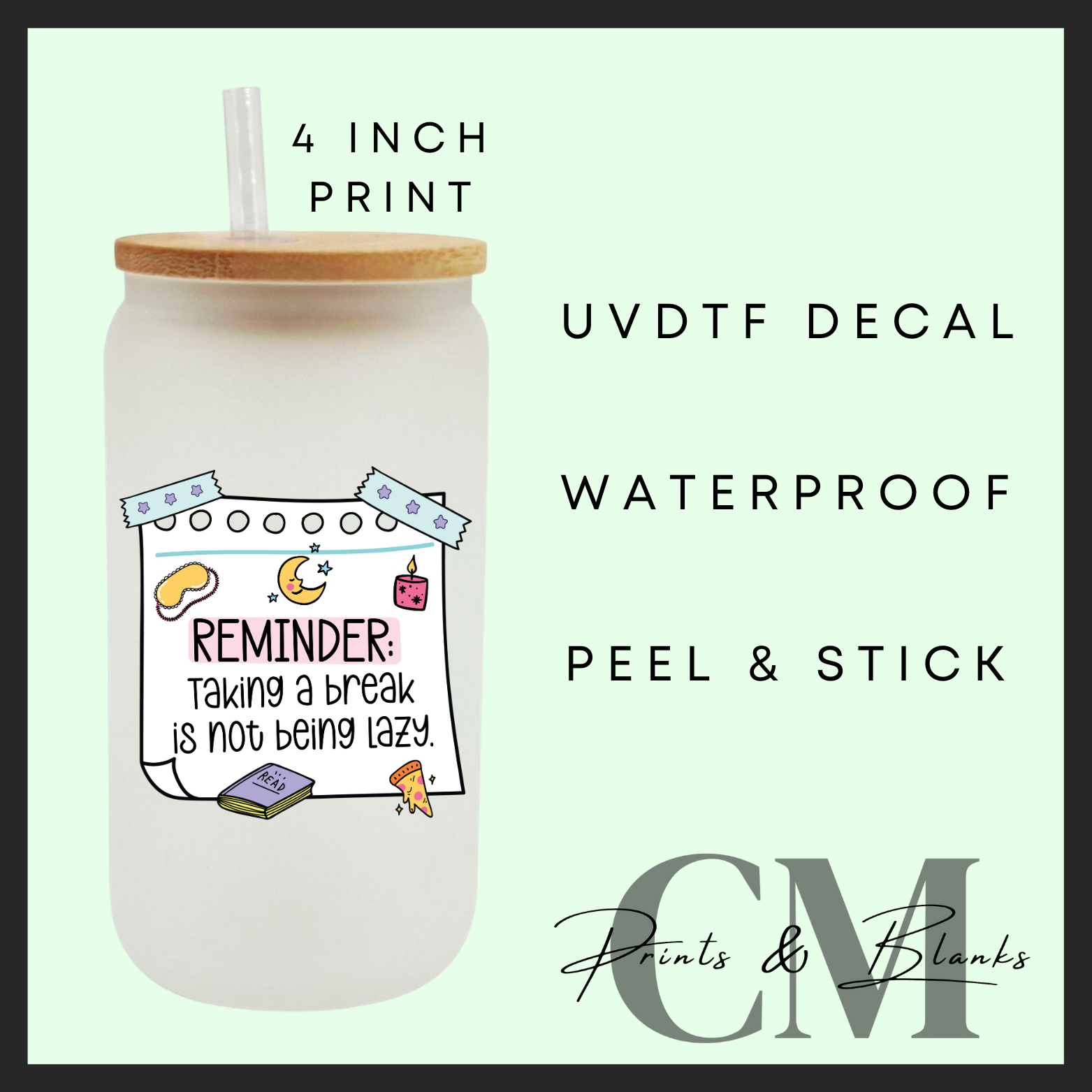 Taking a break is not being lazy Uvdtf single decal (4” / 10cm)