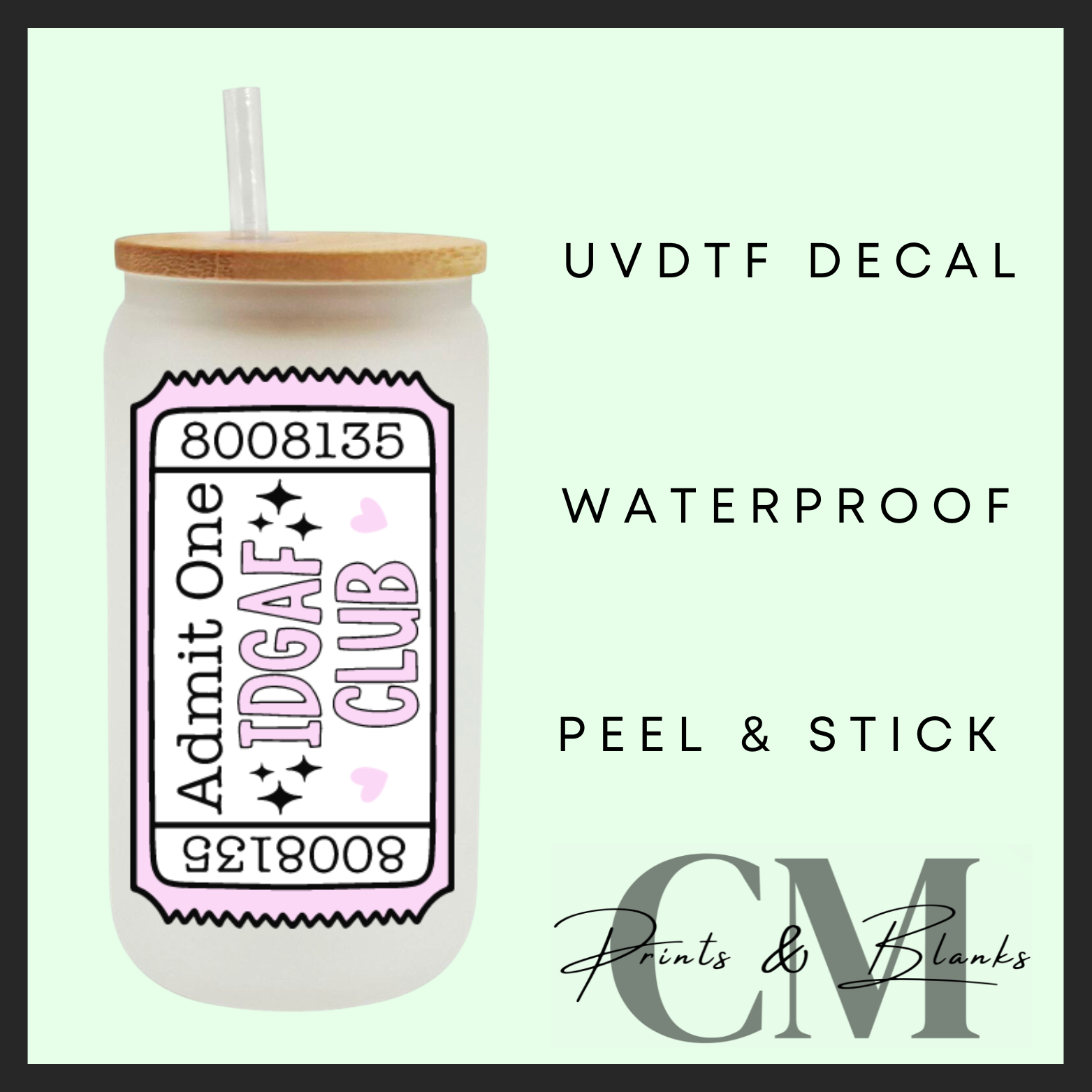 Idgaf club Uvdtf single decal (4”, 10cm)
