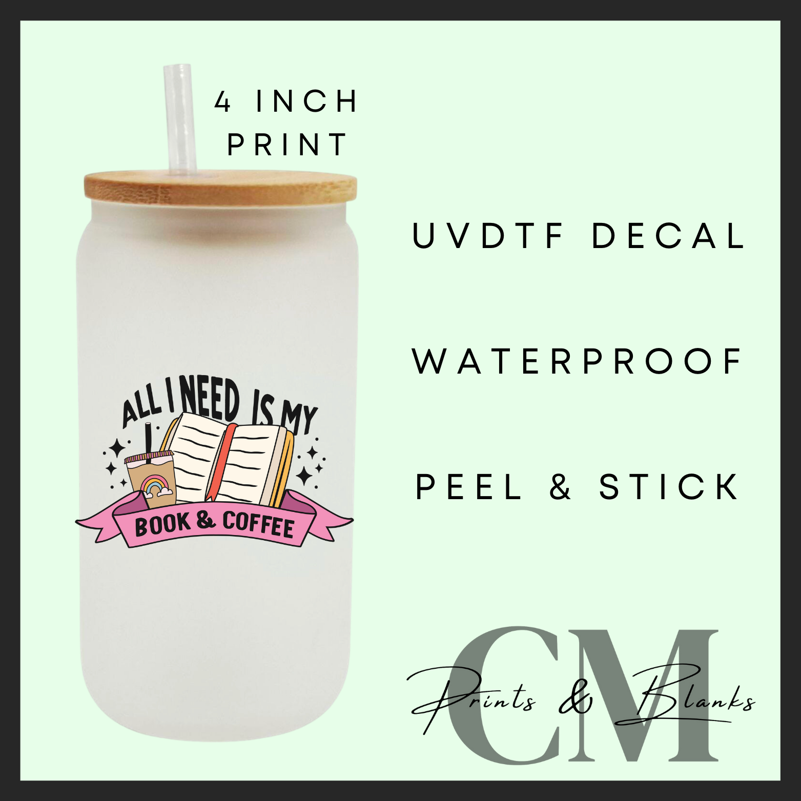 All I need is my book & coffee Uvdtf single decal (4” / 10cm)