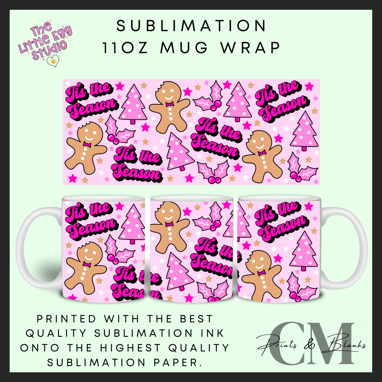 Dreaming of a pink Christmas 11oz sublimation mug wrap