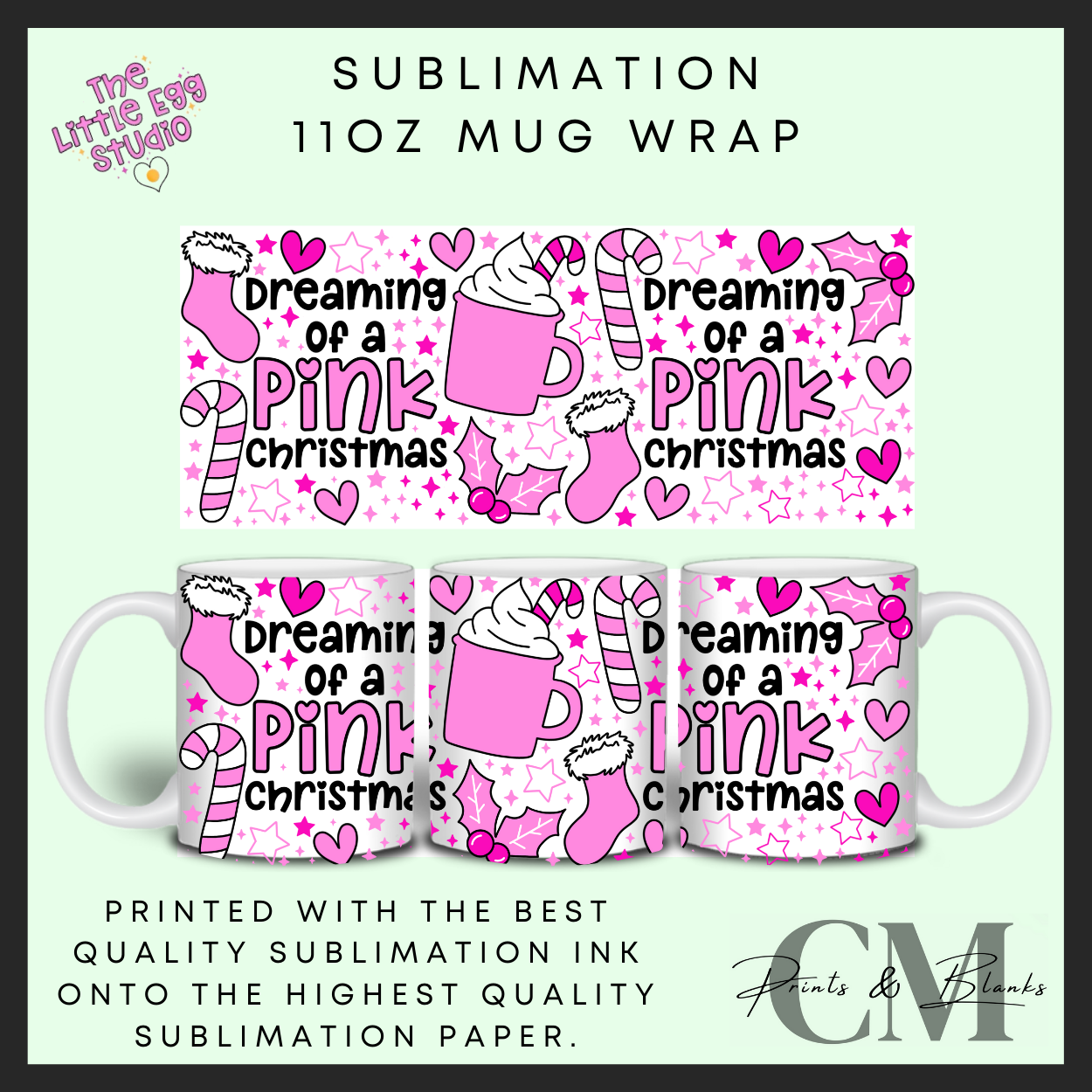 Dreaming of a pink Christmas 11oz sublimation mug wrap