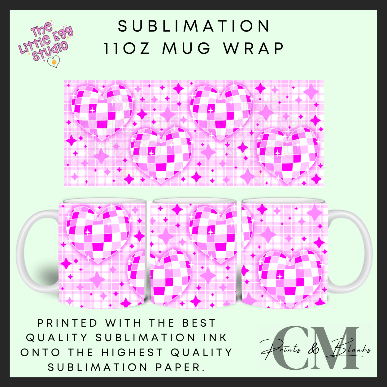 Heart disco ball 11oz sublimation mug wrap