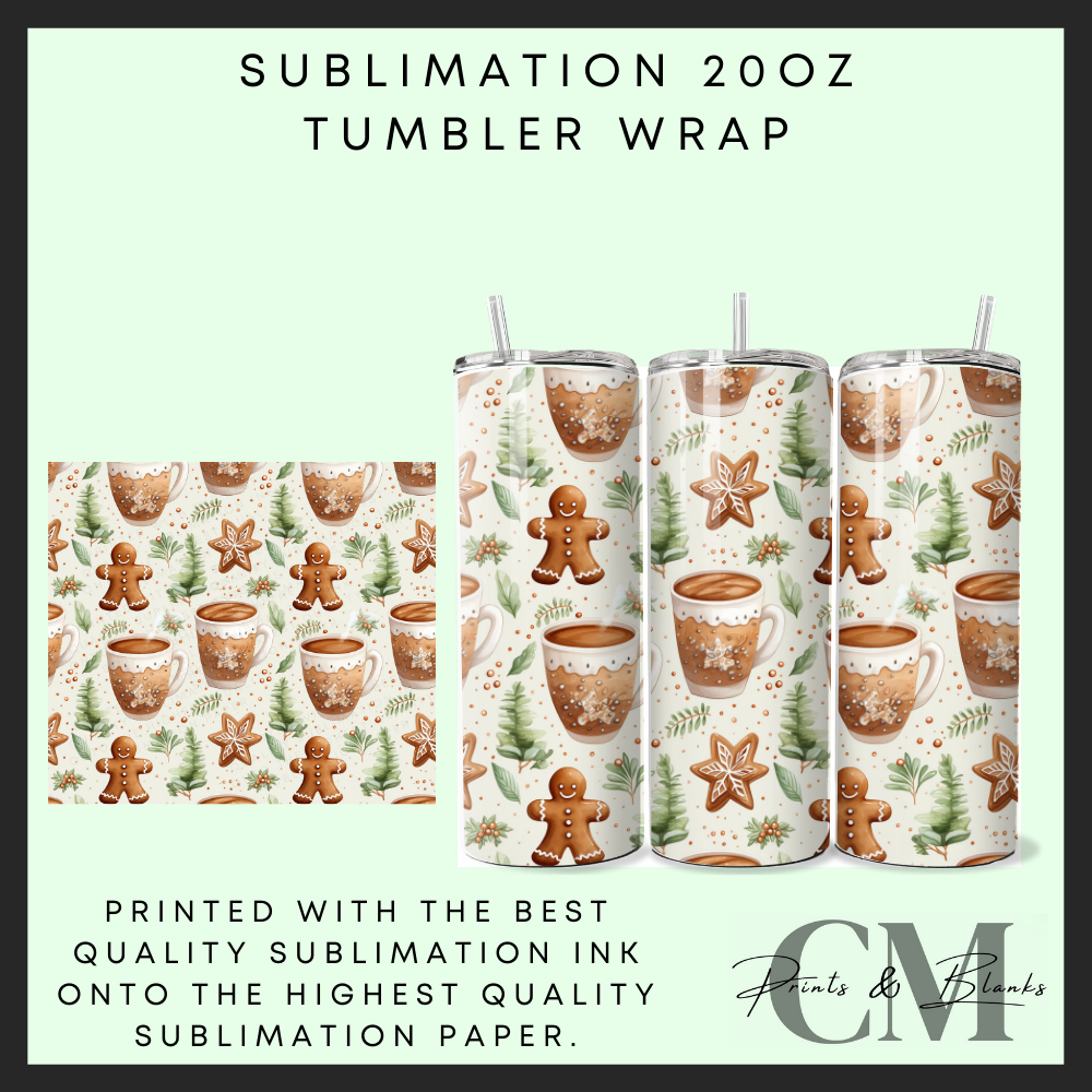 Gingerbread & hot cocoa Sublimation 20oz tumbler wrap