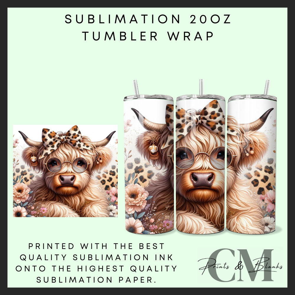 Leopard print now highland cow Sublimation 20oz tumbler wrap