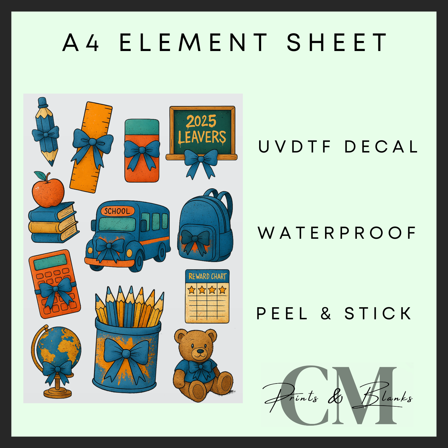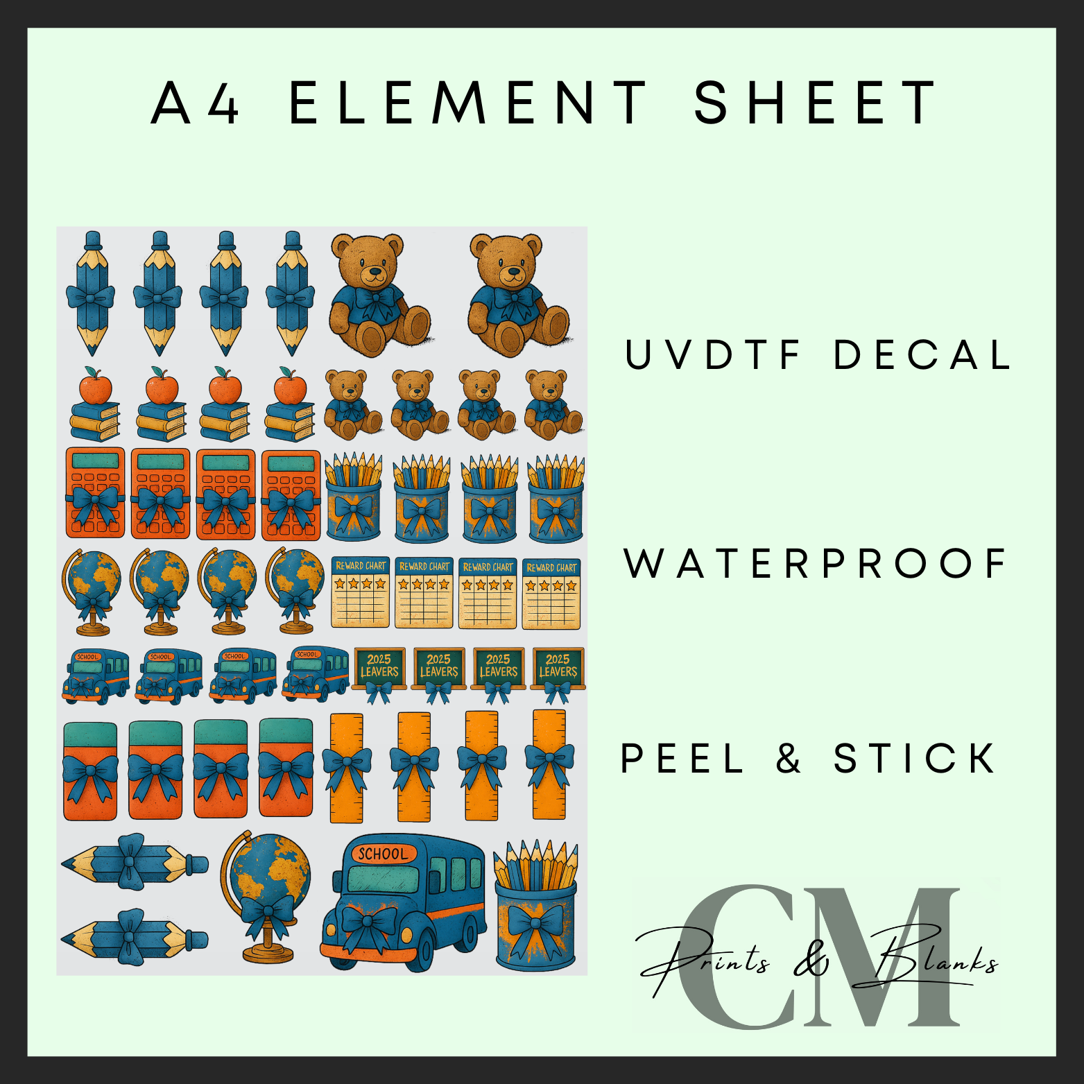 Smaller Blue teachers A4 Uvdtf element sheet