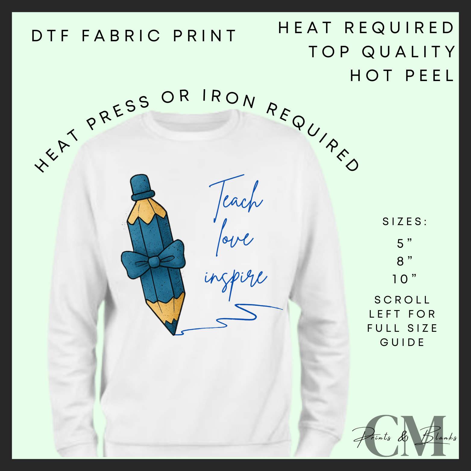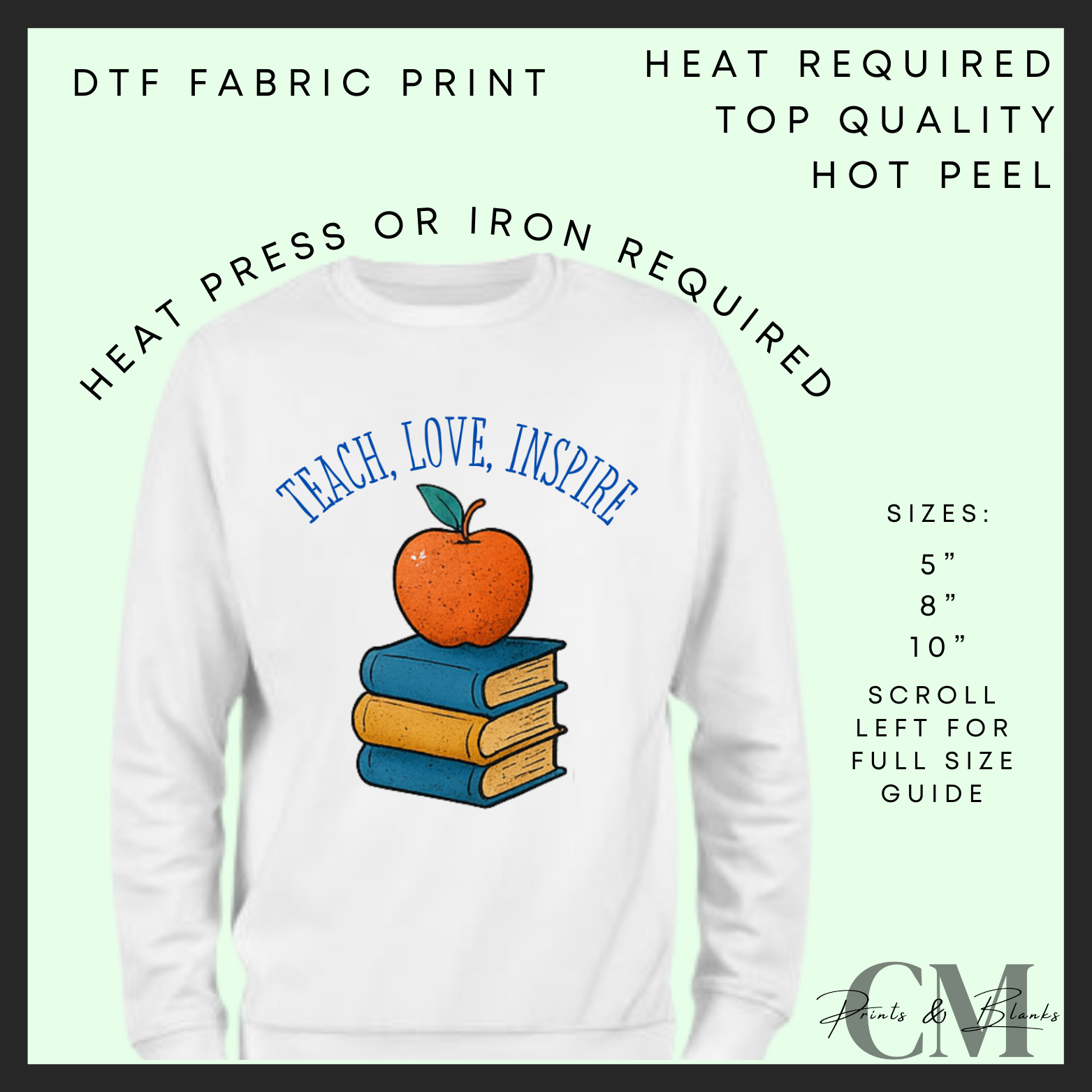 Teach, love, inspire blue books DTF transfer
