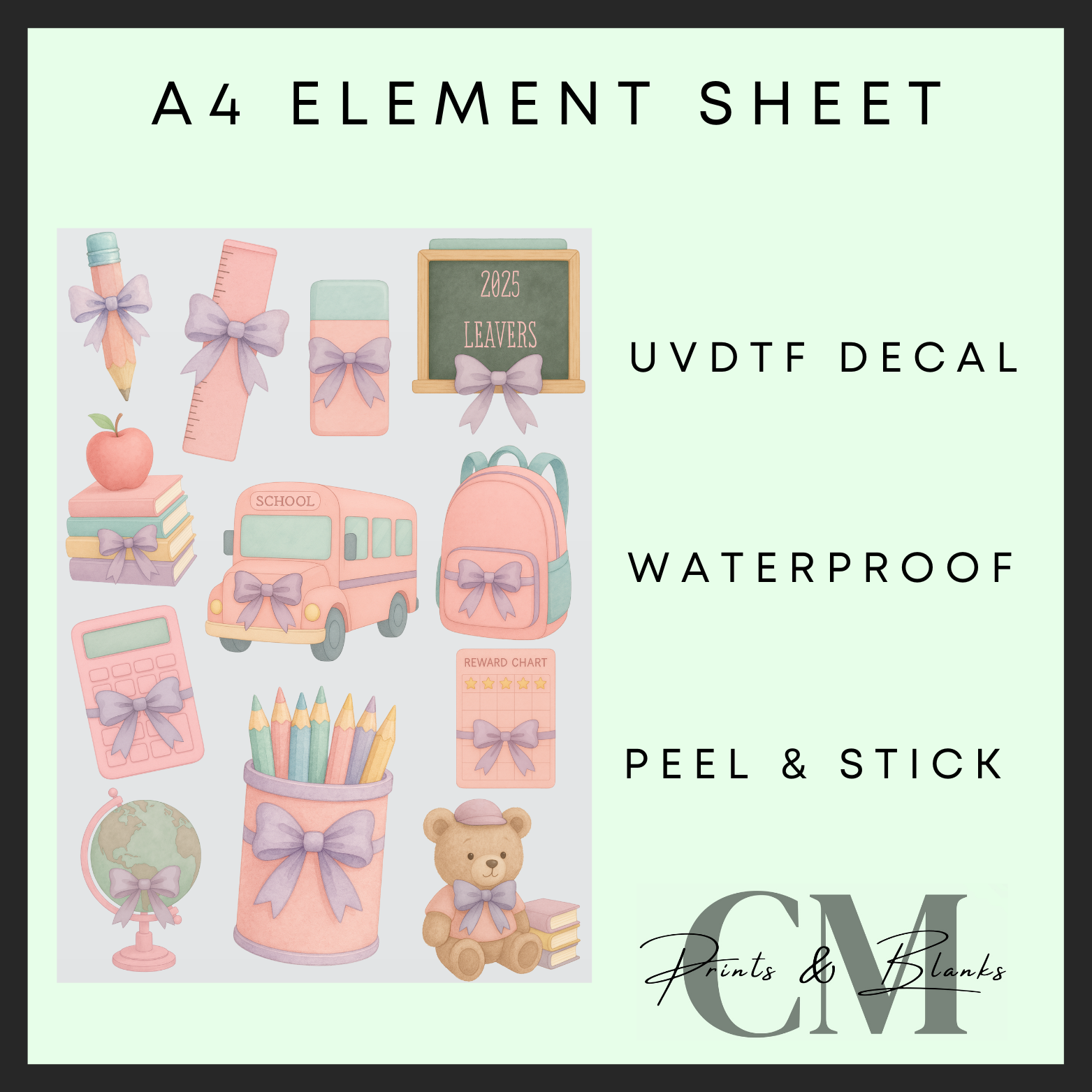 Pink teachers A4 Uvdtf element sheet
