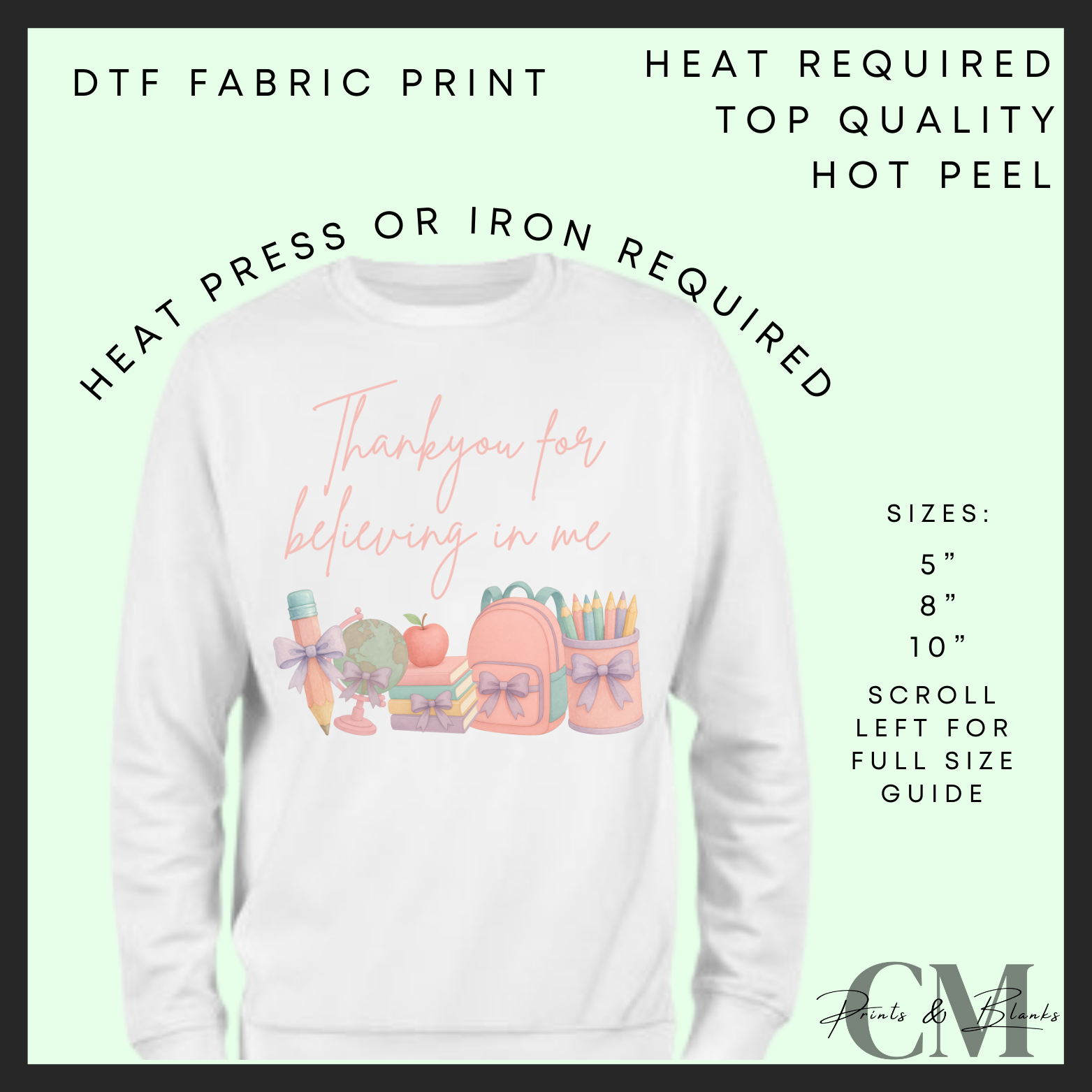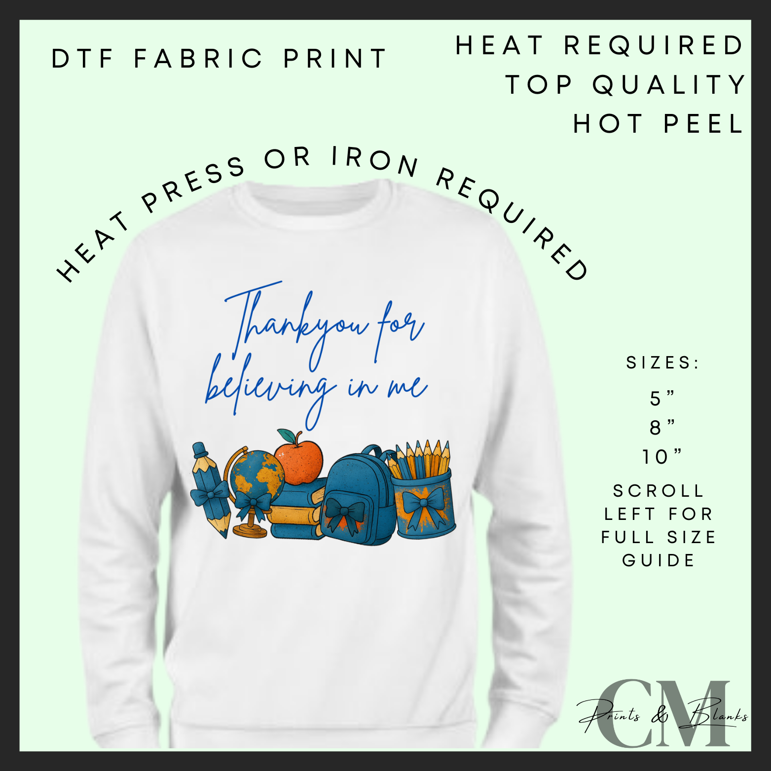 Thankyou for believing in me blue DTF transfer