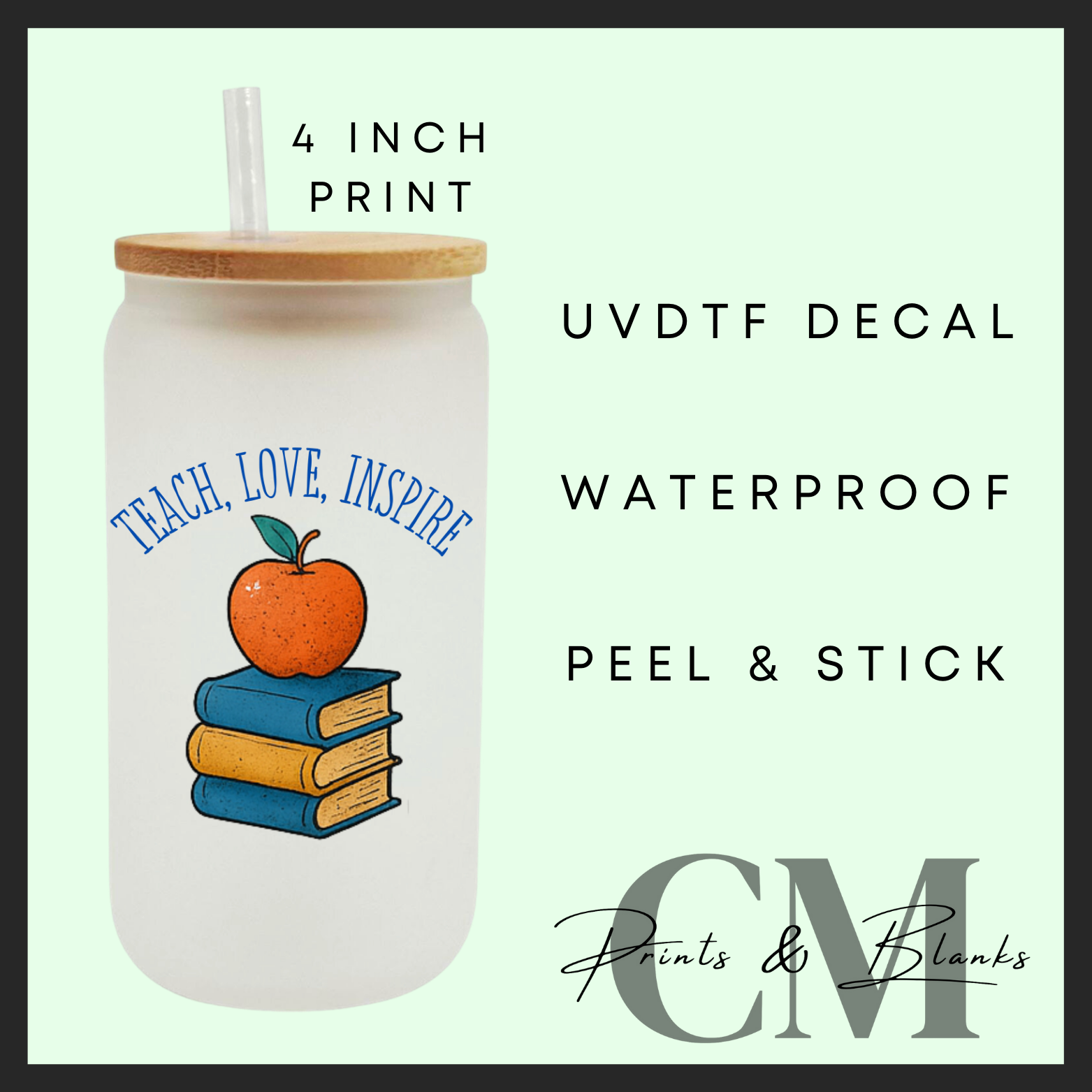 Teach, love, inspire male teacher Uvdtf single decals (4”, 10cm)